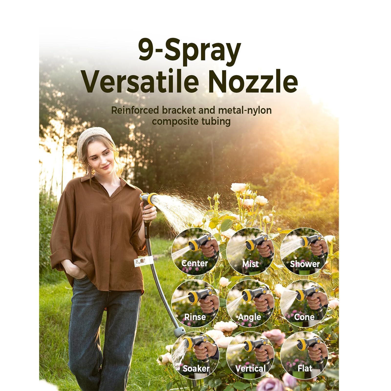 • 9-Spray Versatile Nozzle: Switch between mist, jet, fan, and 6 other patterns for gardens, cars, or cleaning. Ergonomic non-slip grip enhances control
