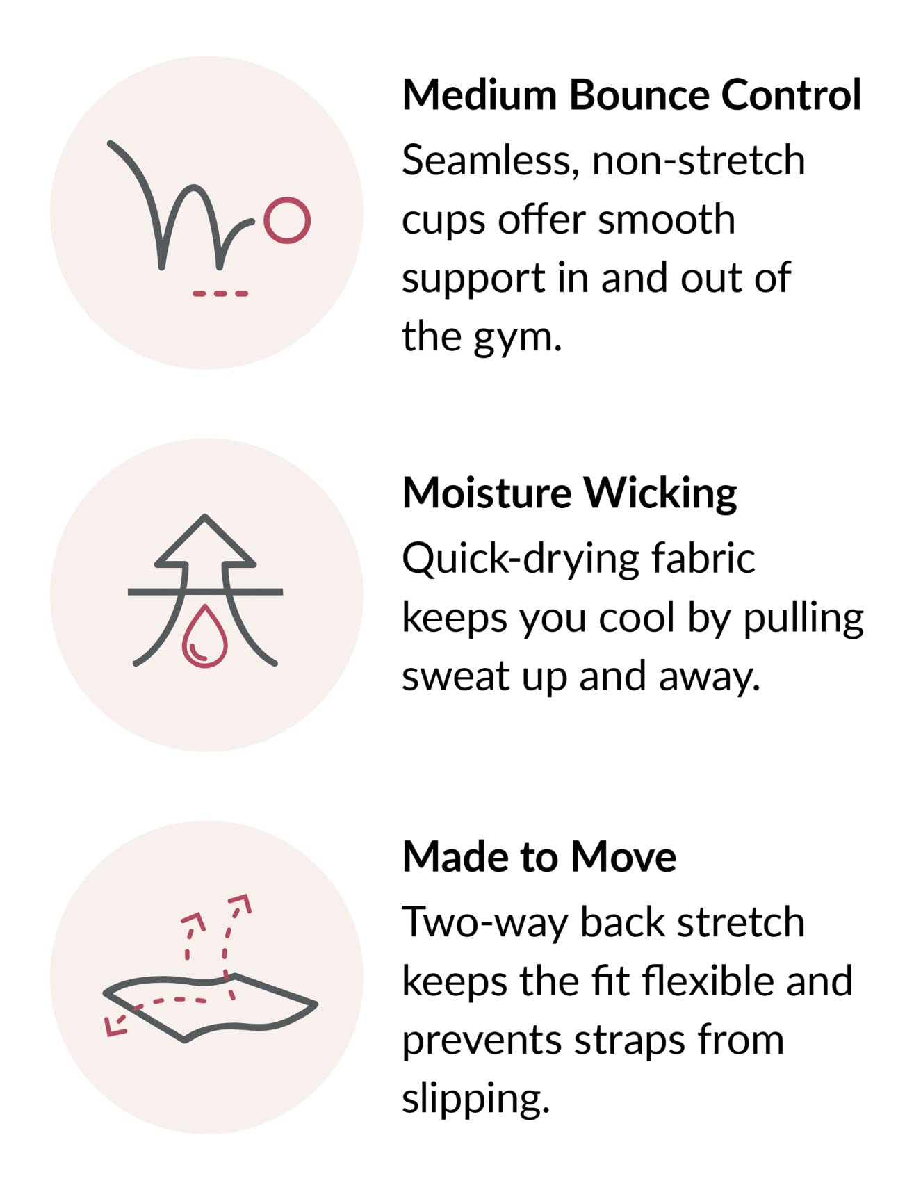 Everyday seamless support combines workout-ready bounce and moisture control in a plus-size sports bra that is comfortable in and out of the gym.