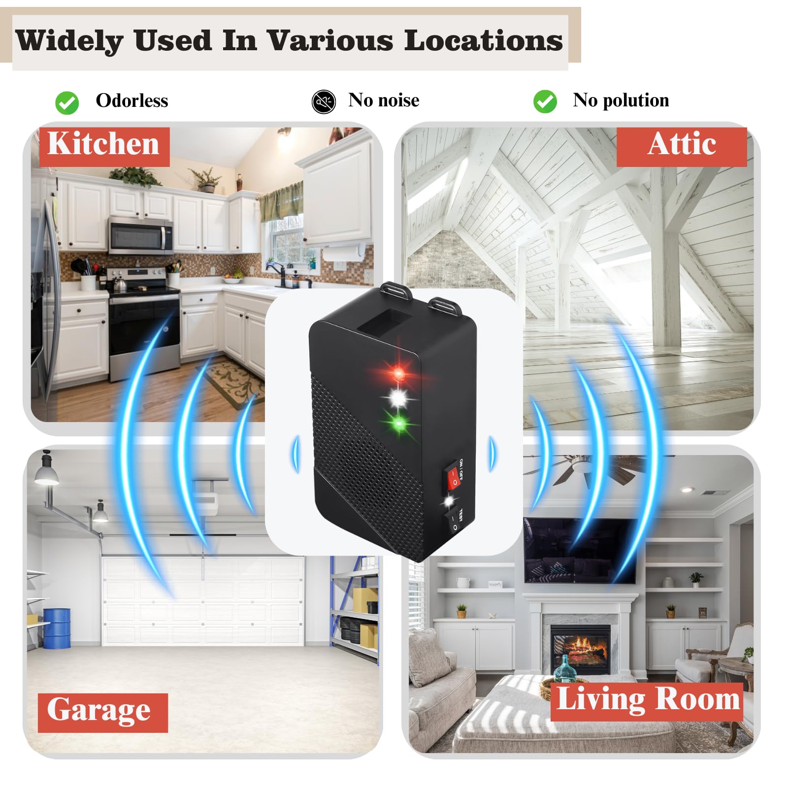 • [Versatile Indoor Coverage]: Whether it’s your garage, attic, basement, kitchen, RV, or storage room, this battery mouse repeller is engineered to keep your spaces pest-free. Perfect for homes, offices, warehouses, and more. It is recommended to use at least one device in each room.