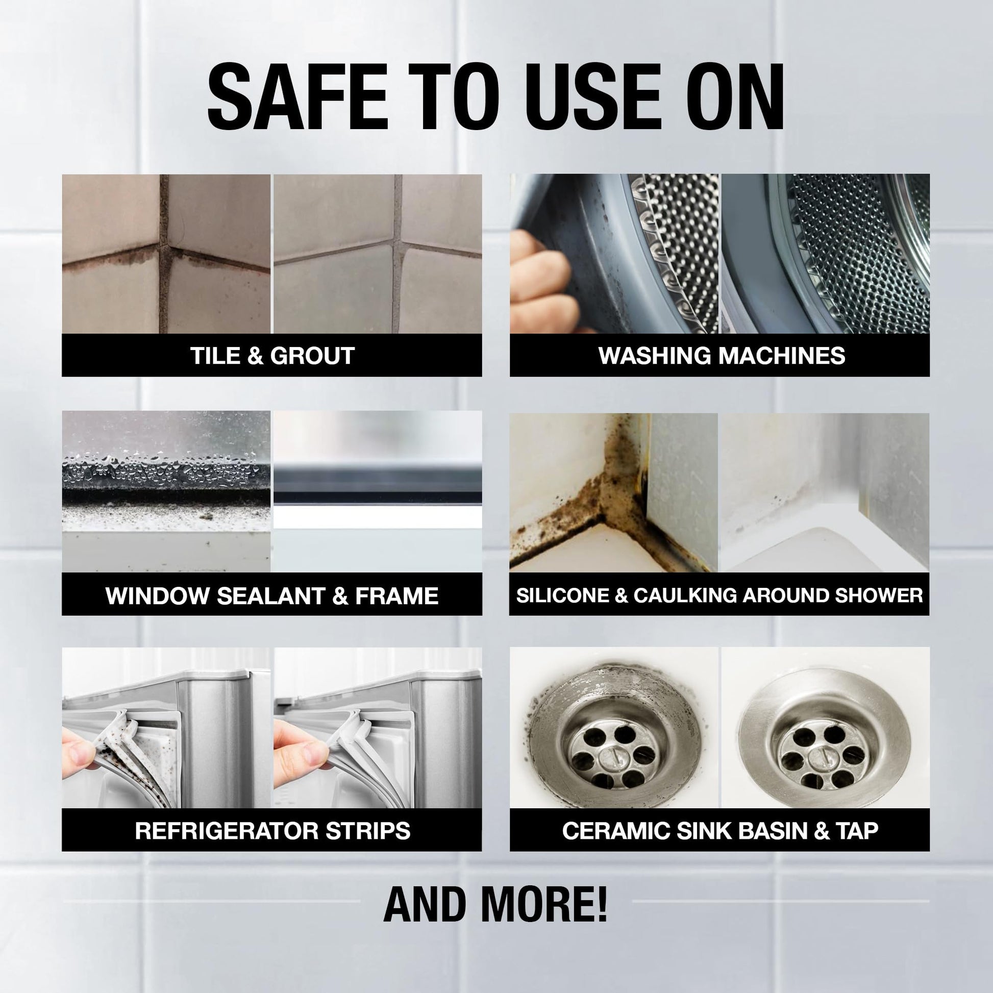 • MULTI-SURFACE FRIENDLY: This versatile mold and mildew cleaner is safe to use on a variety of surfaces, including tiles, grout, ceramic, glass, silicone, bathroom ware, window frames, doors, pool areas, solar panels, ovens, and domestic appliances