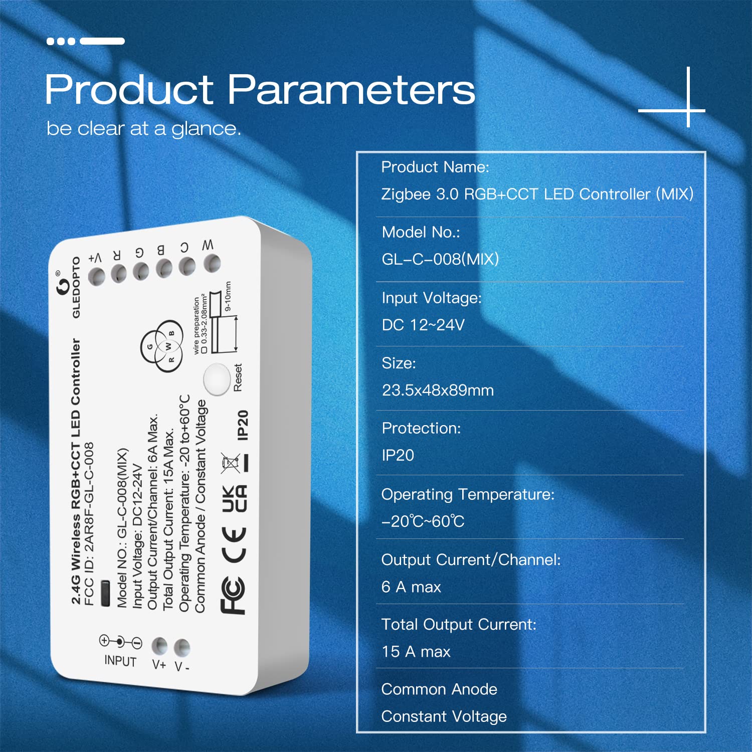• Smartphone App Control: Use your smartphone to control the LED strip light with the ZigBee RGBCCT Controller Mix