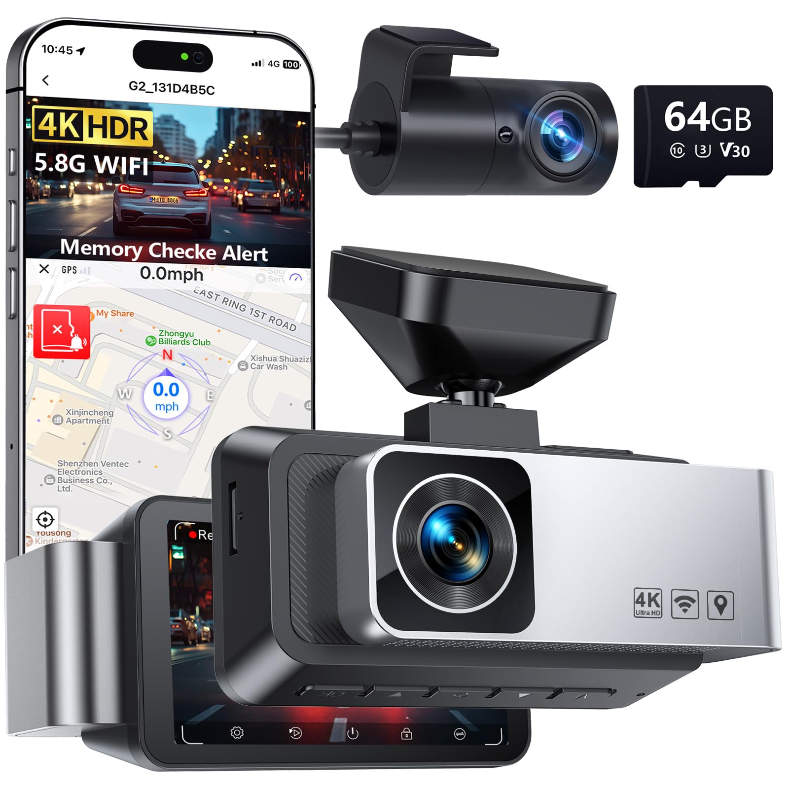 • High-Speed WiFi Connectivity and Smart App Control: This dash cam wireless system supports both 5GHz and 2.4GHz WiFi, compatible with iOS and Android devices. Use our free app to live view, playback, edit, and share videos effortlessly, managing camera settings with ease and sharing your journeys with friends and family at the touch of a button.