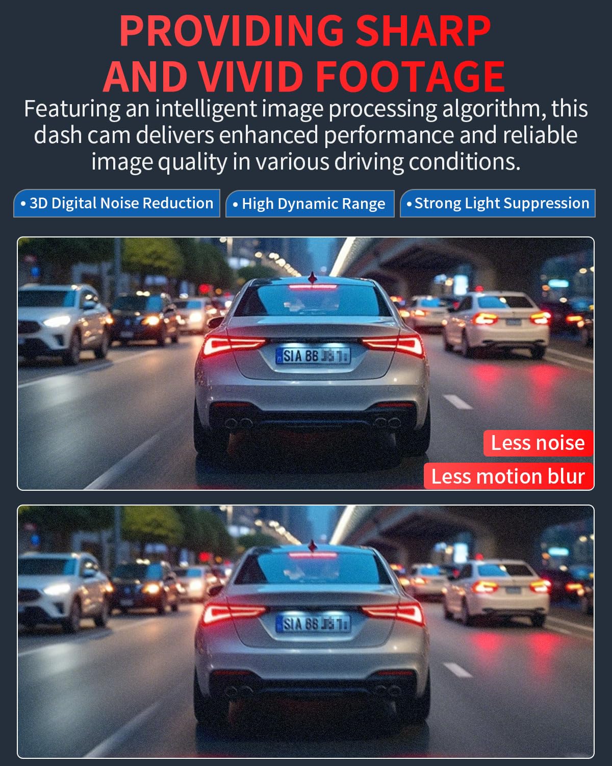• Superior Night Vision: Equipped with premium optical lenses, a large F1.55 aperture, and six layers of glass, this dash camera for cars integrates HDR, WDR, and 3D DNR technologies, enabling clear recording in low-light conditions and capturing every crucial detail.