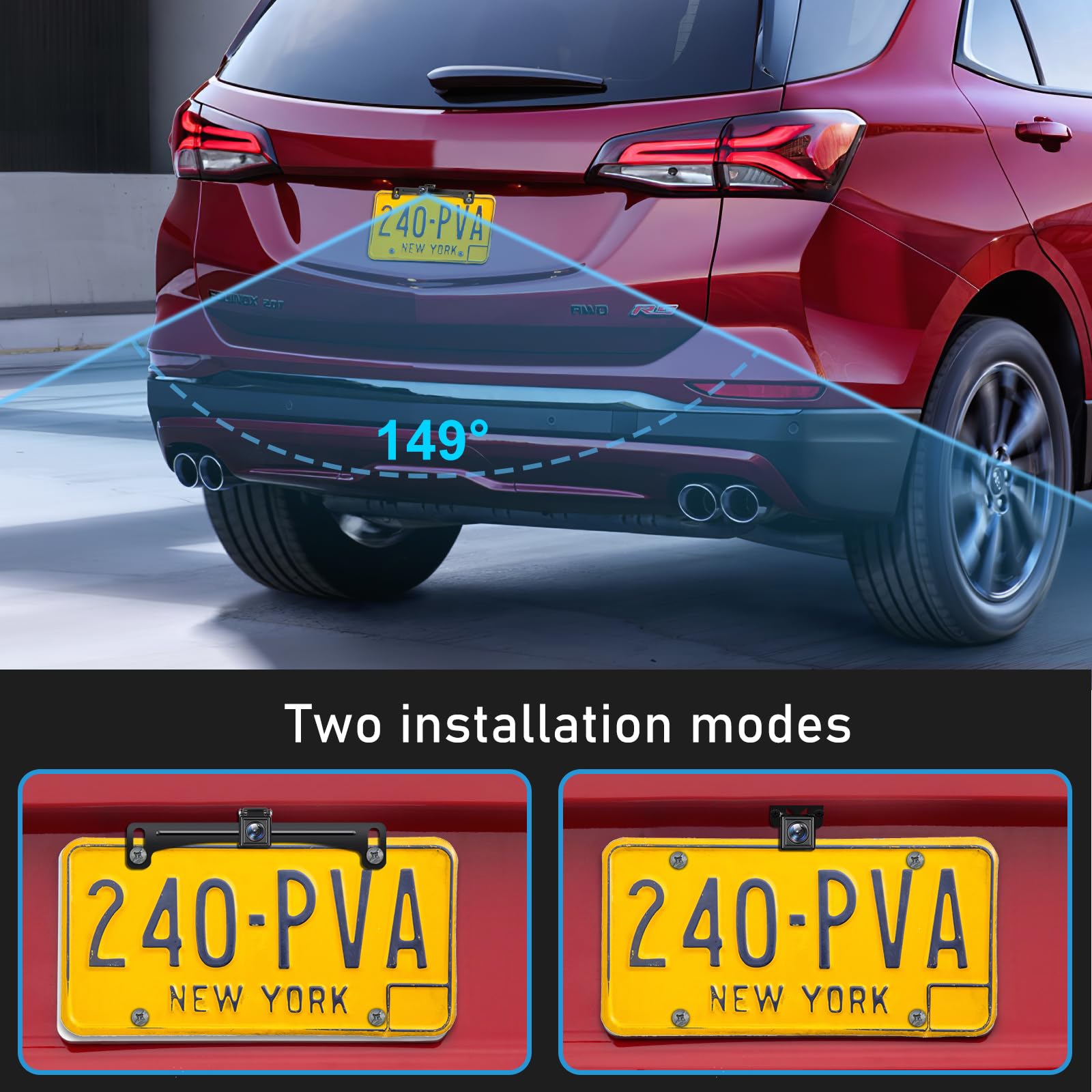 • 149° Viewing Angle HD Fish Eye Lens: The Reverse Camera lens with a larger aperture and a stronger sense technology. Compare to ordinary lens, it with High transmittance glass, fish eye appearance, F1.8 aperture, the all makes the camera with more wide angle, maximum output pixels and better night vision performance.