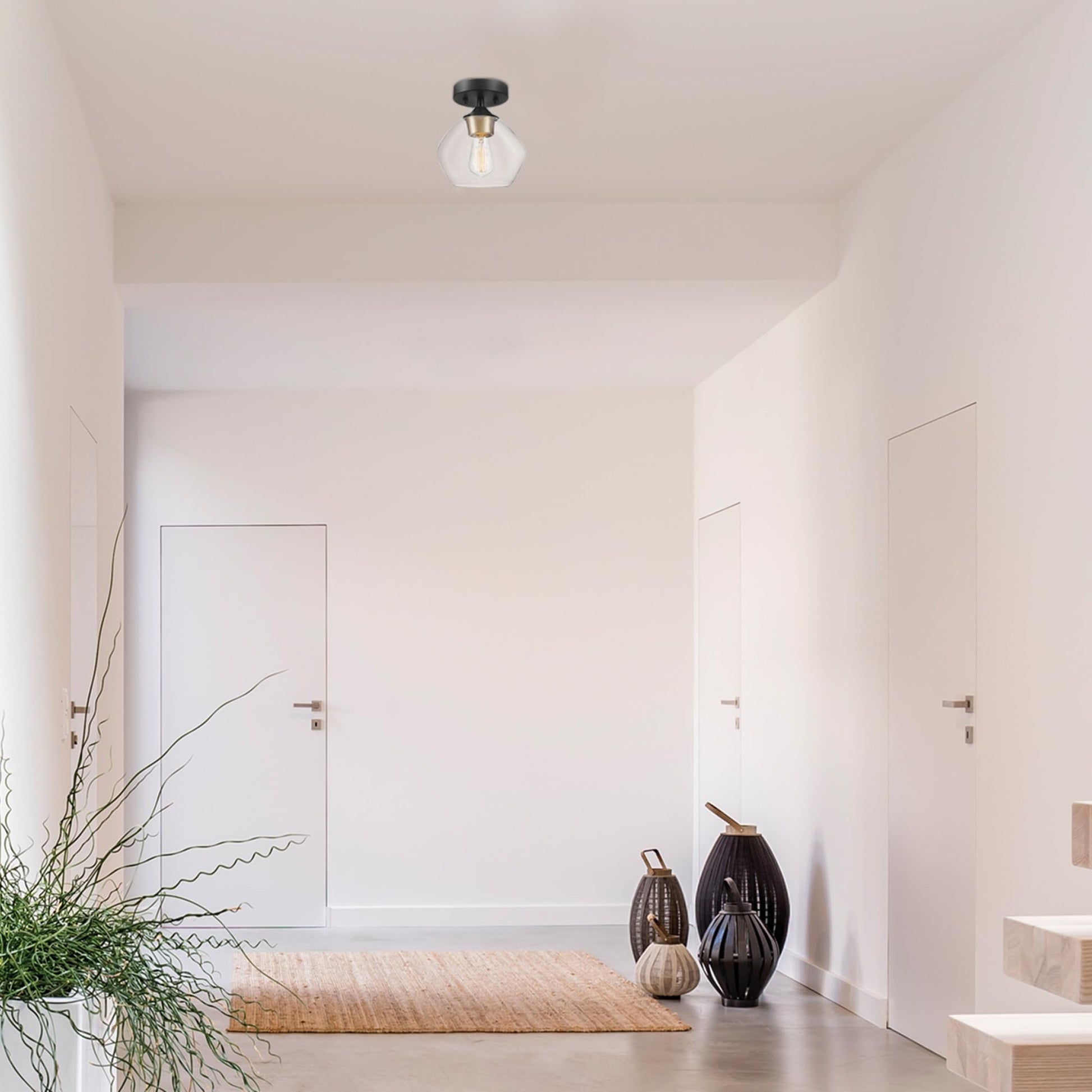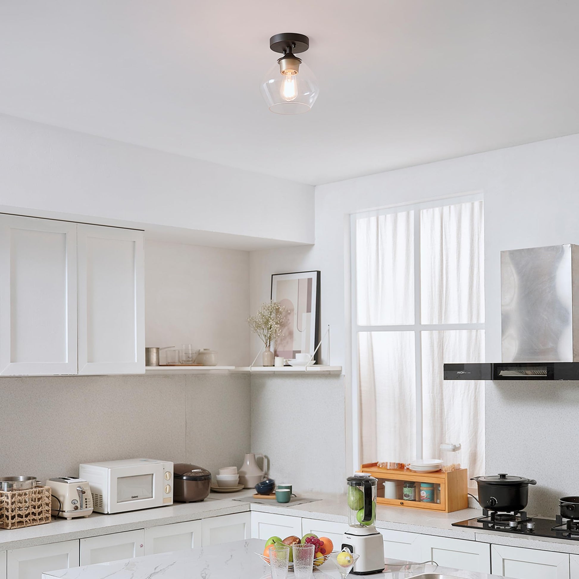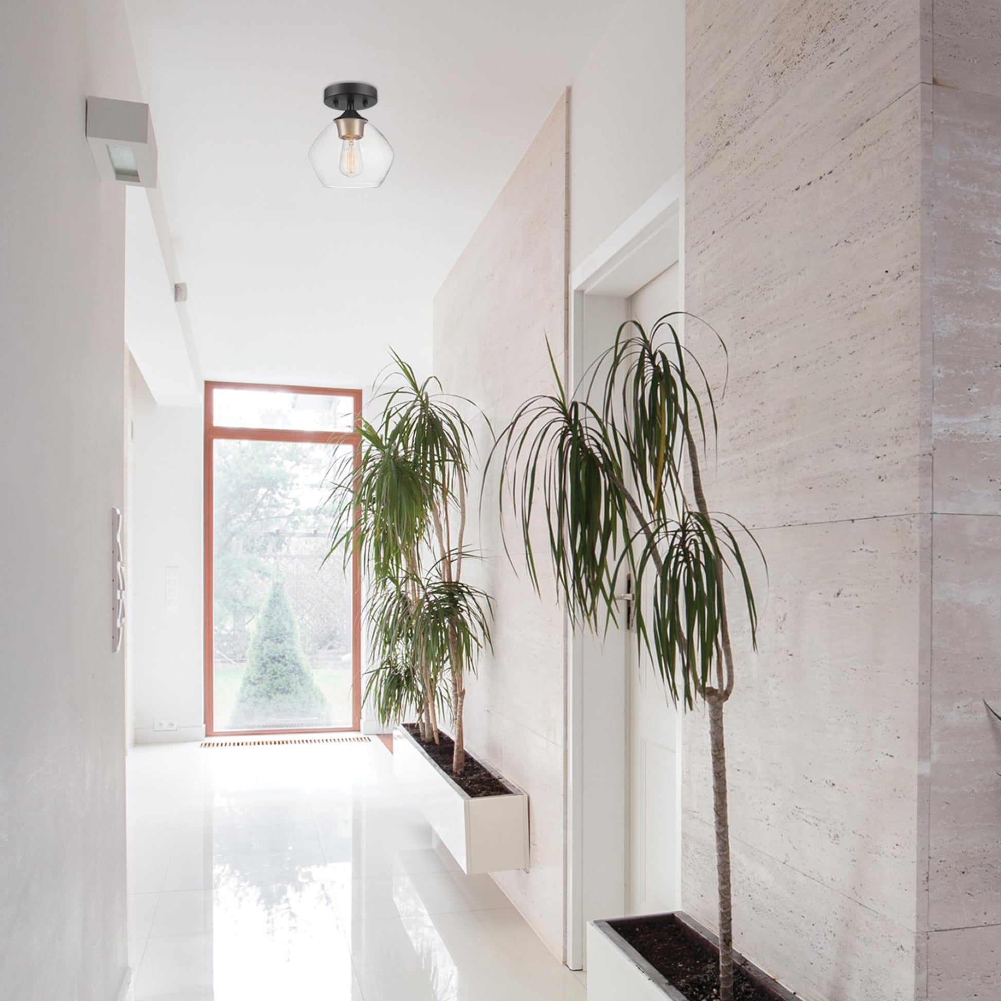 • CLEAR GLASS SHADE: the clear glass shade of this semi-flush mount ceiling light openly showcases the bulb of your choice - change the bulb, change the look. Try a vintage Edison bulb for an effortlessly mid-century modern appearance or use a designer bulb for a completely different feel