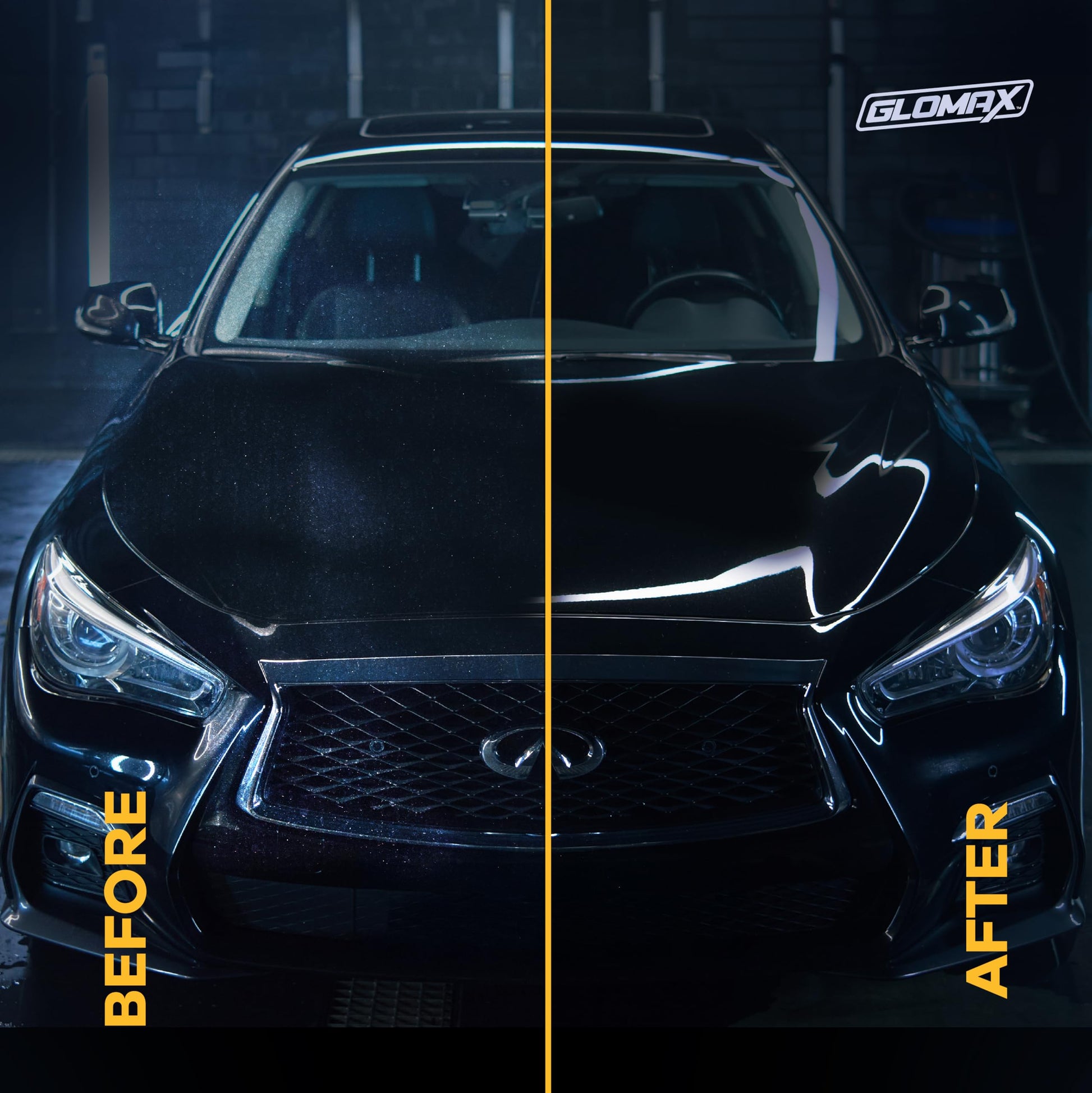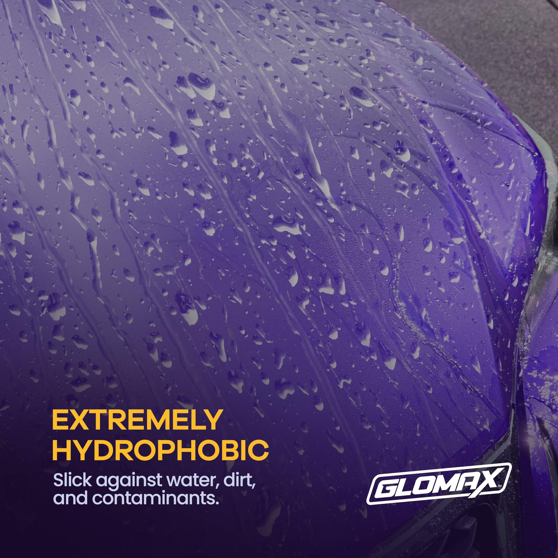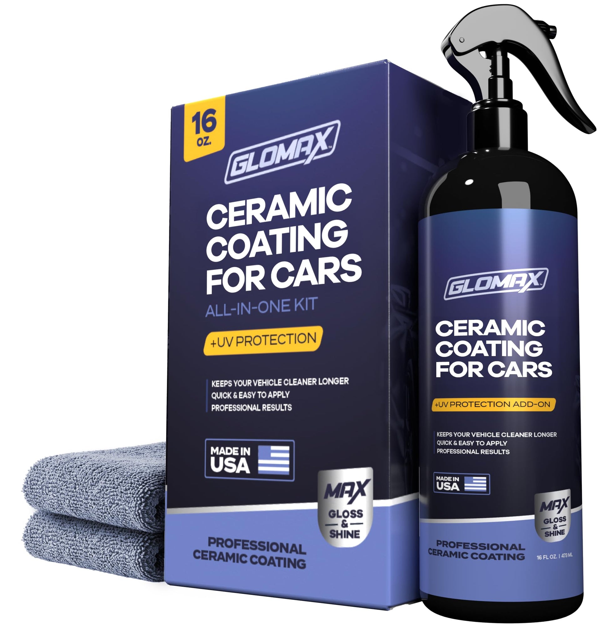 GLOMAX Ceramic Coating For Cars (16 oz.) - Hydrophobic Ceramic Car Wax Spray With Added UV PROTECTION - LONG LASTING Shiny Car Stuff - Spray Wax For Cars With 2 Micro Fiber Towels, Waterless Wash