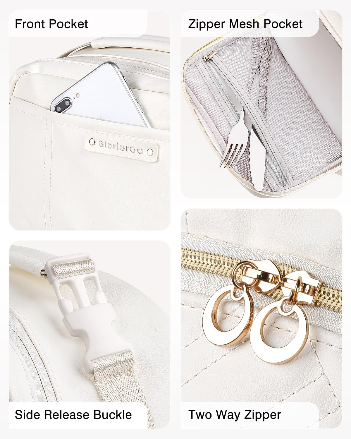 GLORIEROO Lunch Box Bag Women Girls - Double Deck Vegan Leather Insulated Waterproof Leakproof Cooler for Work Travel Picnics - Back to School Teacher Mothers Day Christmas Birthday Gifts