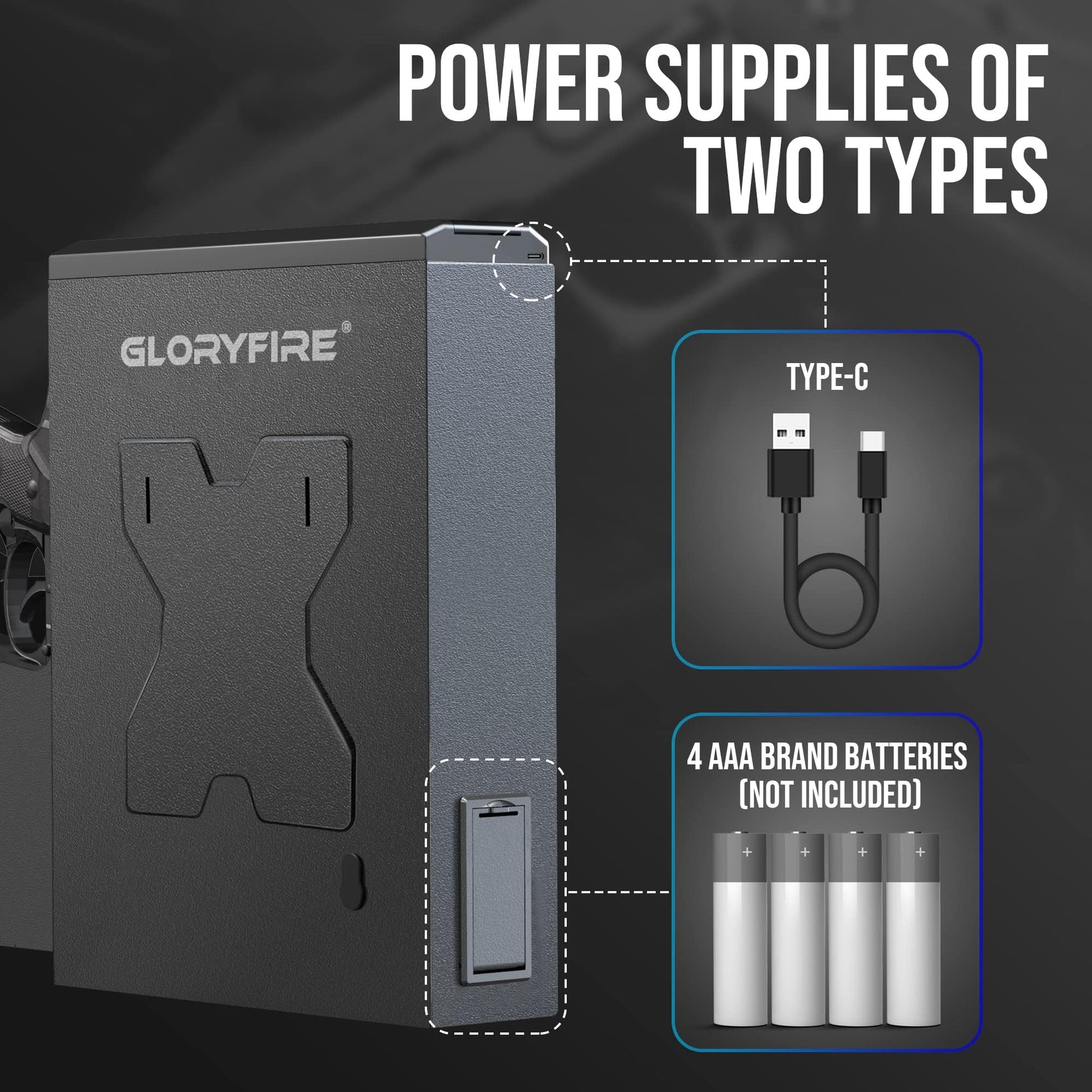 GLORYFIRE Gun Safe Biometric Pistol Safe, Mounted Nightstand Quick Access Handgun Safe and Gun Lock Box for Car, Truck, Desk, Bedside, Wall with Security Fingerprint, Key Access, PIN Code
