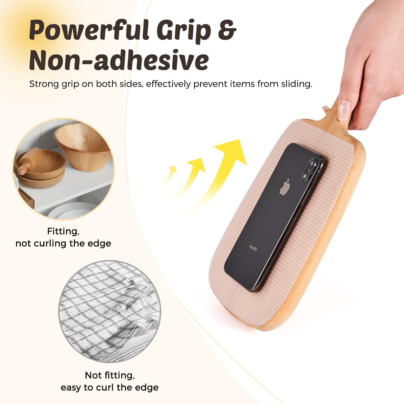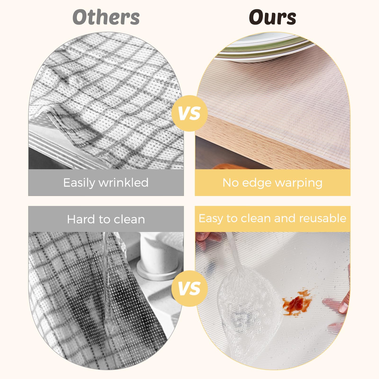 • Waterproof and Easy to Clean- These storage shelf liners are waterproof and dust-proof which keeps belongings in your kitchen cabinet, fridge and drawer organized and protected from grease and spills. The non-adhesive shelf liners are easily removable and can be cleaned with mild soap and water.