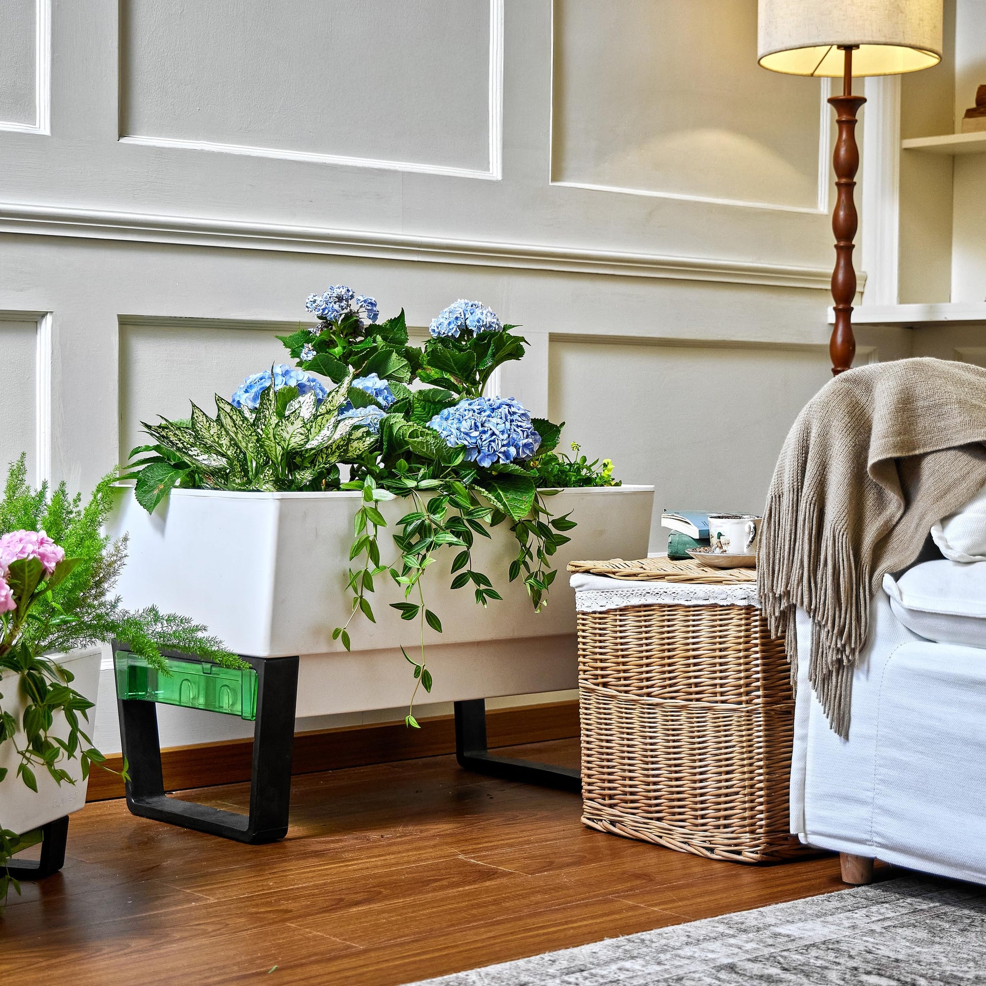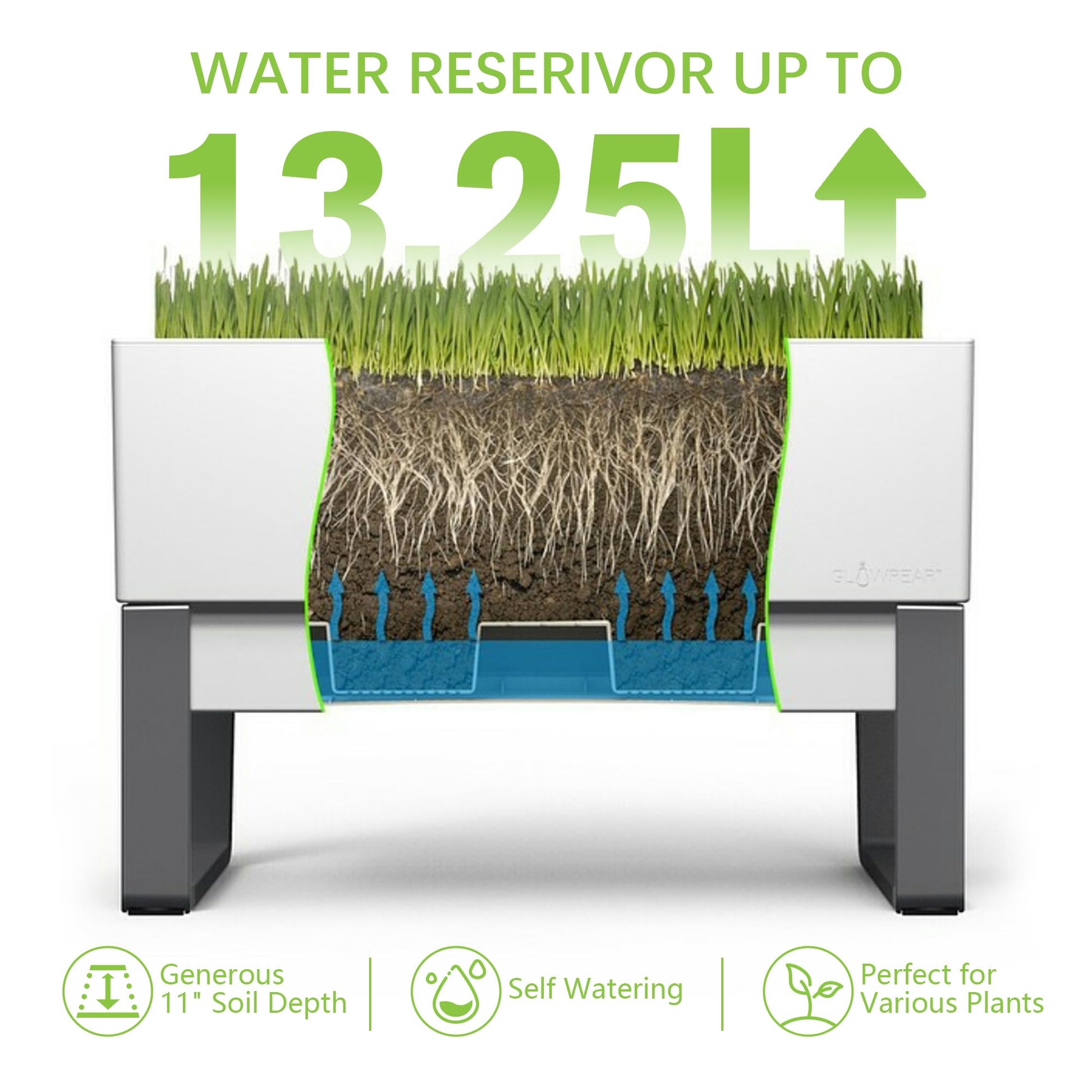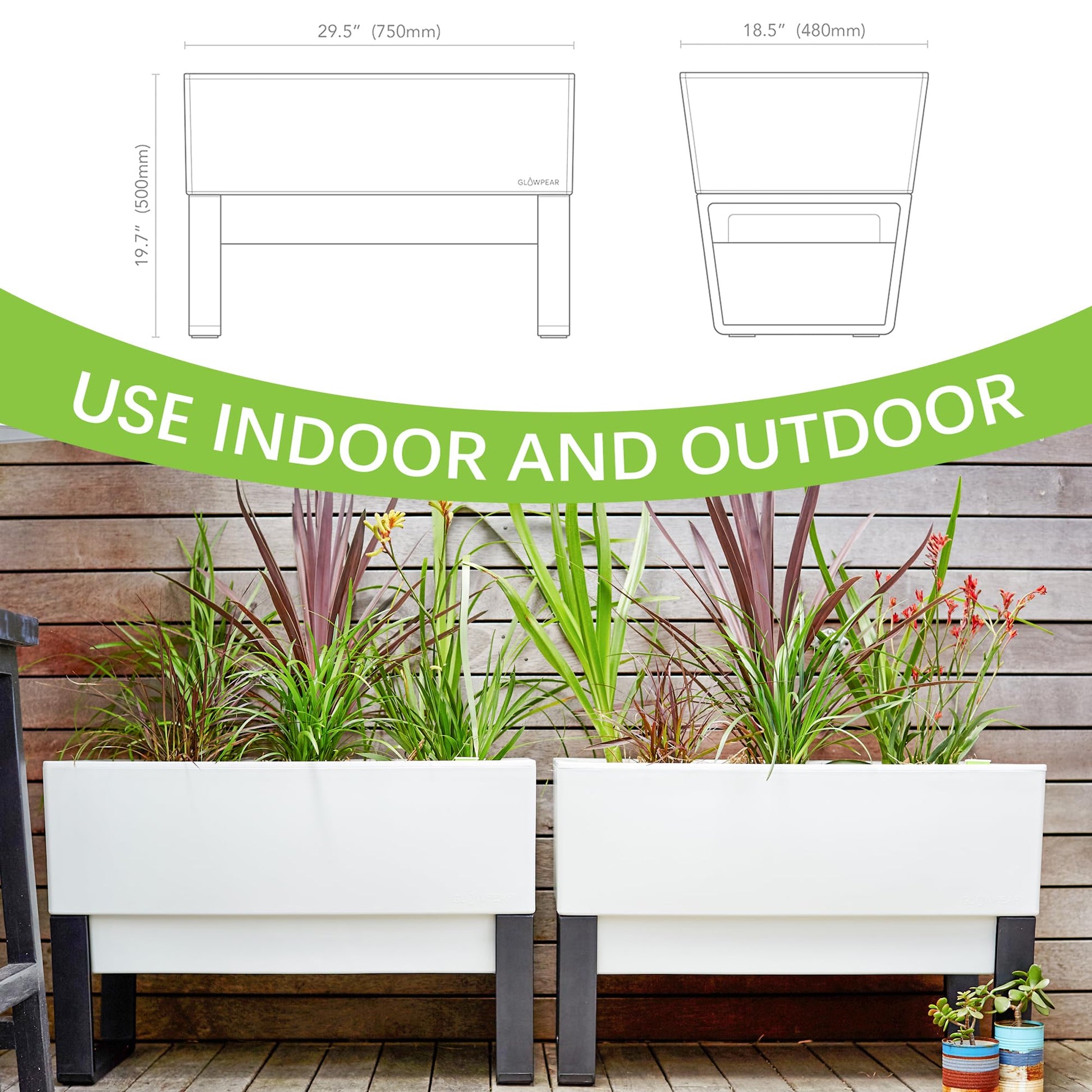 Glowpear Self Watering Planter Box - 29.5", White - UV Stable, Scalable Urban Raised Garden Bed with Water Gauge, Indoor Outdoor for Vegetables, Flowers, Herbs, and Succulents, Gardening