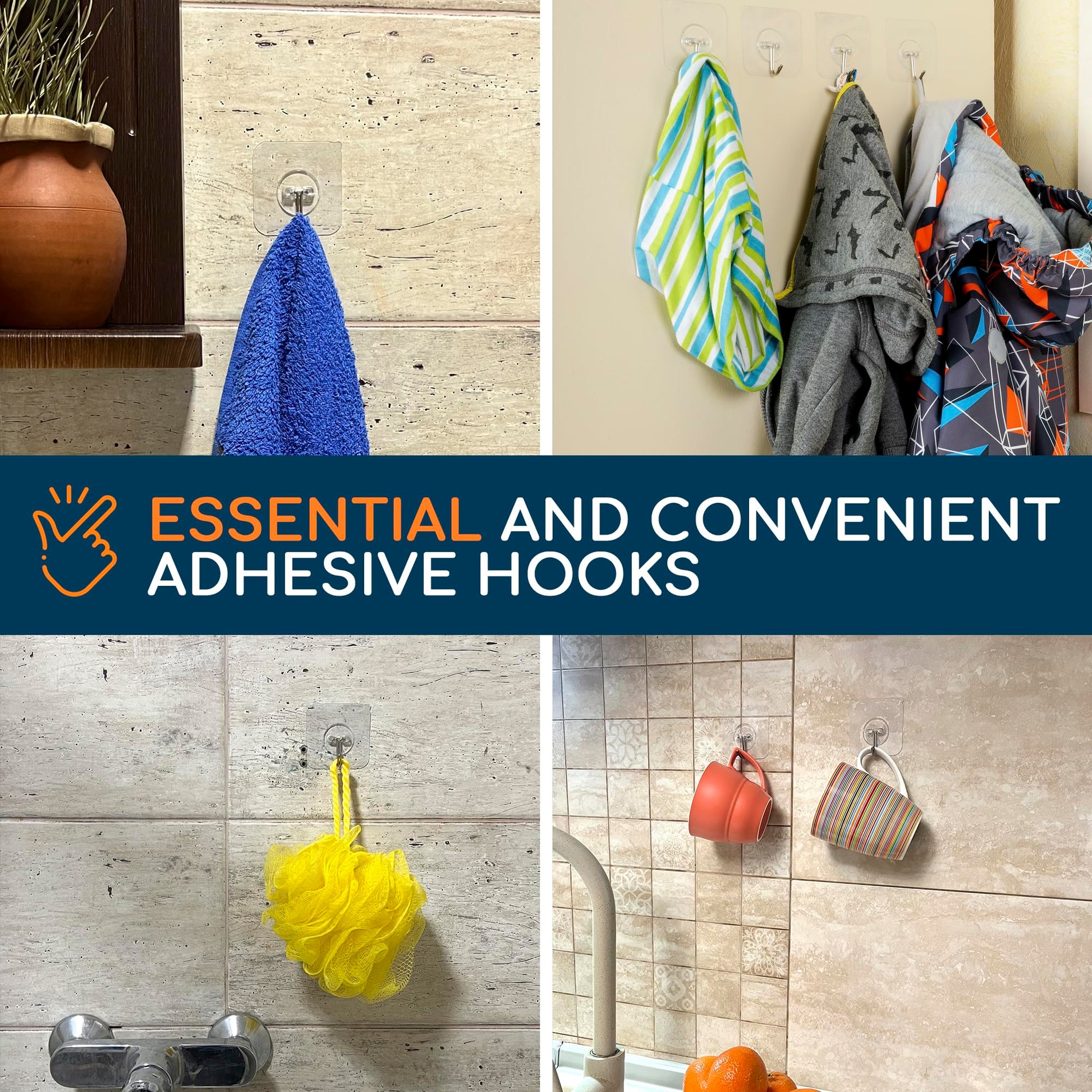 • Easy to use: Apply clear adhesive hooks effortlessly to clean and reposition without damaging surfaces; no nailing or drilling required; reuse after cleaning and drying; keep accessories secure on any surface.