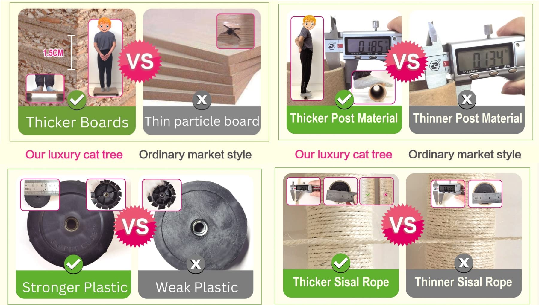 • Ultra-Durable: This cat tree is made from highly durable compressed wood with faux fur; multiple scratching posts are covered by natural sisal ropes, perfect for cats to scratch, climb, play, and become active