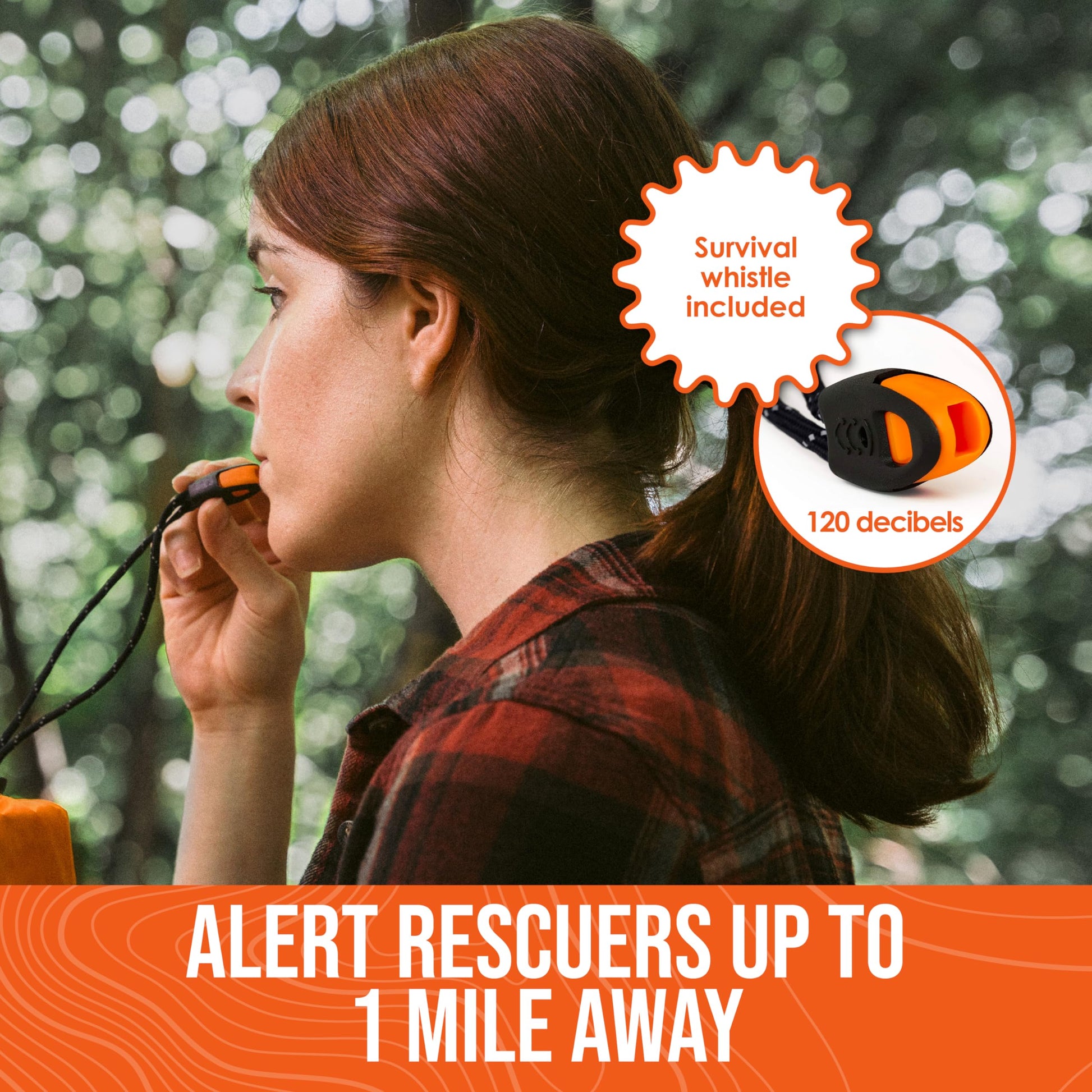 • Incredibly Compact - At 4.1oz, this lightweight thermal sleeping bag bivy won’t weigh you down. It packs down nicely in the 4” x 3” stuff sack and includes a 120-decibel whistle to alert rescuers up to 1 mile away.