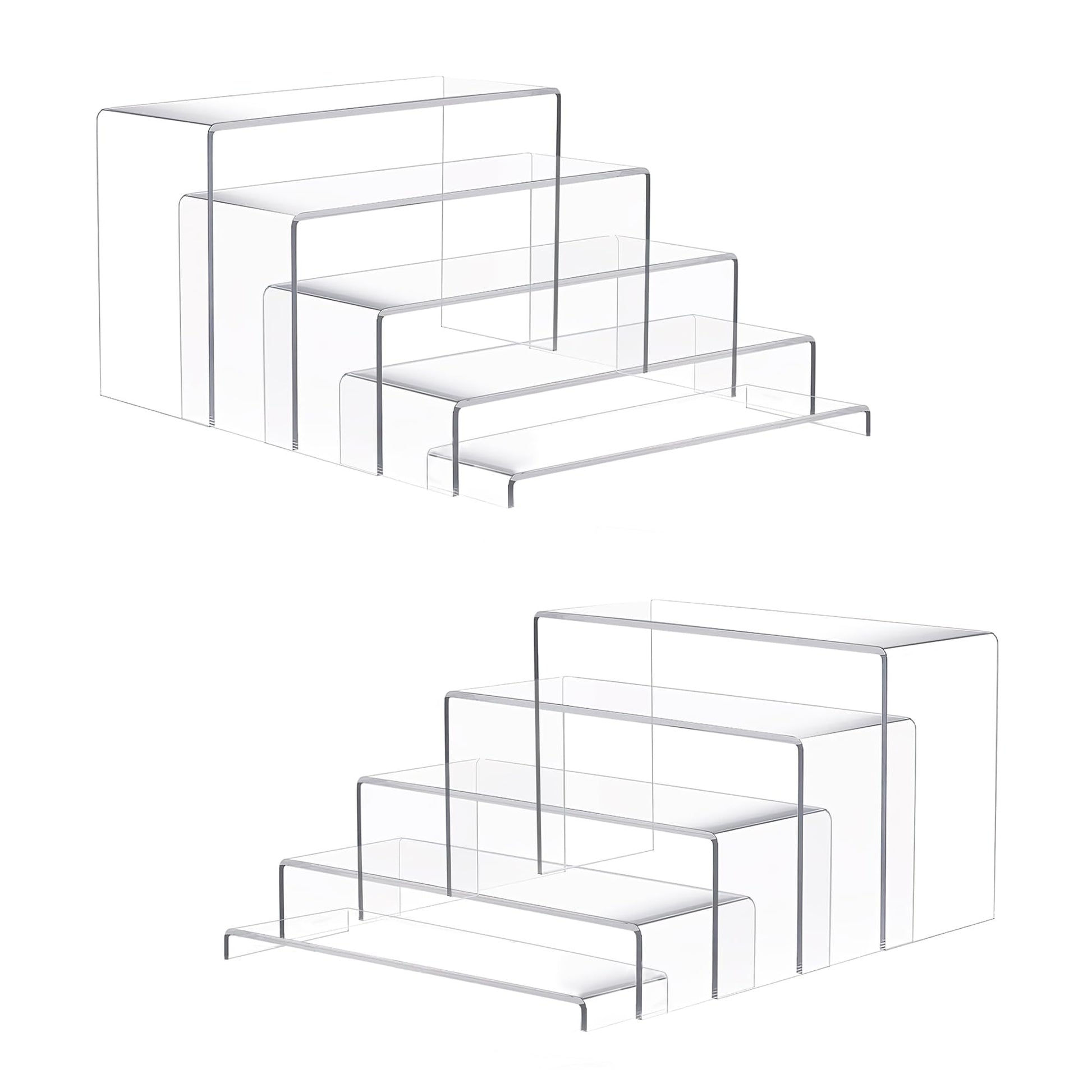 • Multiple Display Stands: With five different sizes(9.2x3x5in, 8.8x3x3.9in, 8.4x3x2.8in, 8x3x1.7in, 7.6x3x0.6in) Different sizes and dimensions of acrylic risers can meet your various needs.Each with two pieces, you'll have ample display layers to showcase your items. Expand your display with these acrylic display stands, giving you plenty of options for showcasing your products