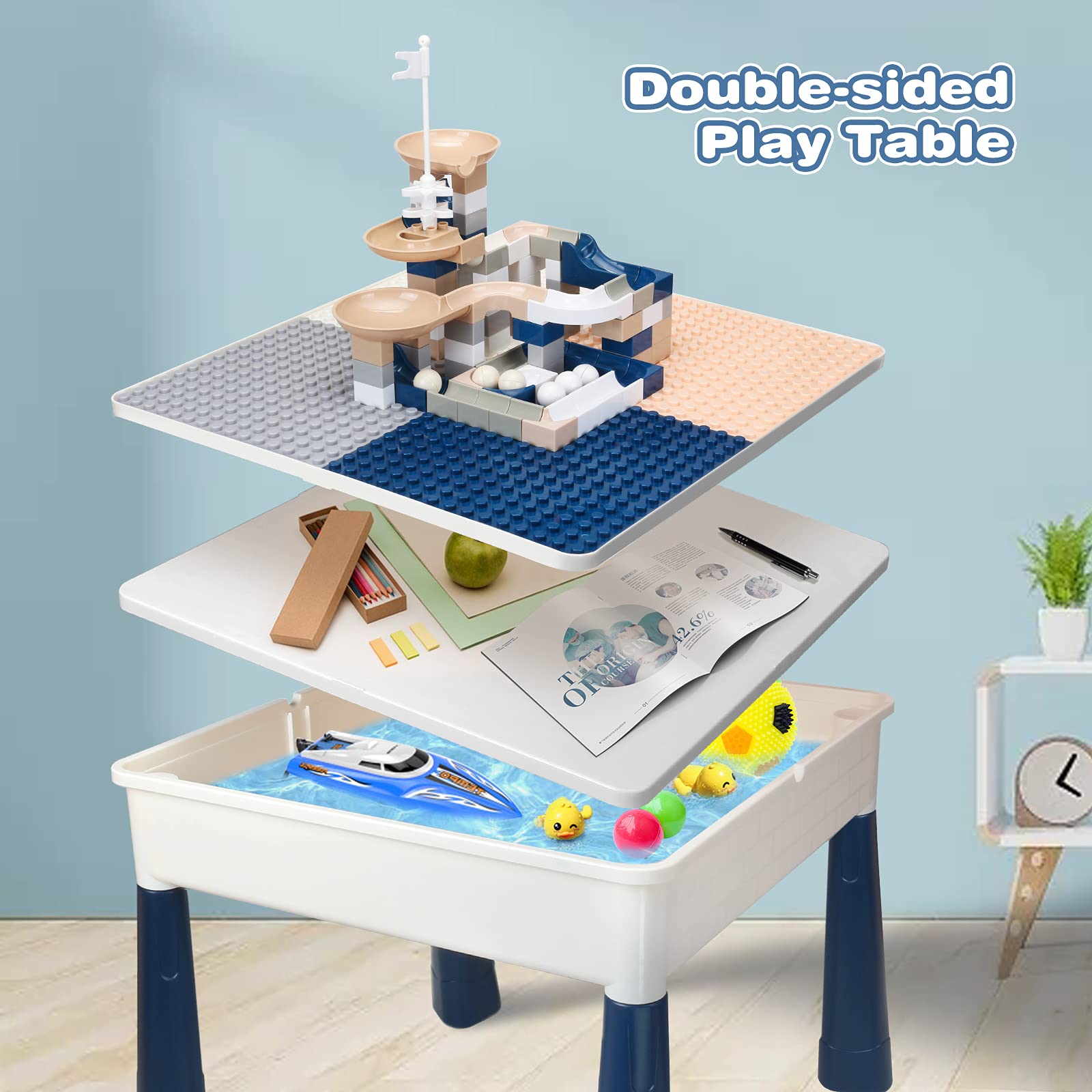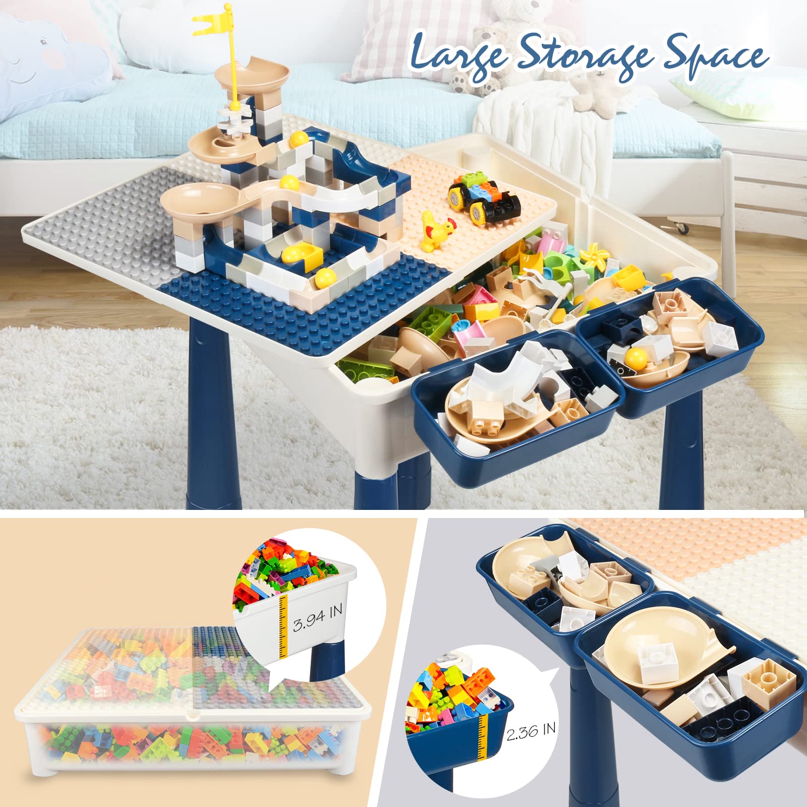 GobiDex 7 in 1 Multi Kids Activity Table Set with 2 Chairs and 100 Pcs Large Size Blocks Compatible with Classic Blocks.Water Table,Sand Table and Building Blocks Table for Toddlers Activity