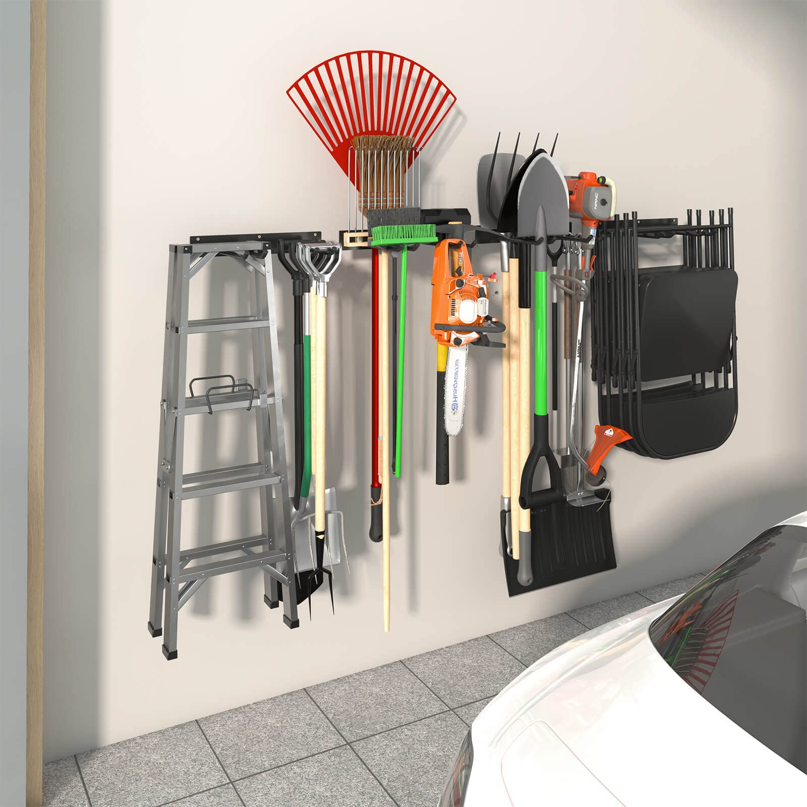 • 【Indoor & Outdoor Space-Saving Experts】- The Tool Organizers and Storage Are Suitable for Tool Rooms, Garages, Laundry Rooms, Kitchens, Bathrooms, Utility Rooms, Yards, Gardens and Other Locations. Our Tool Racks Can Store Shovels, Racks, Hoes, Axes, Crane Hoes, Brooms, Weeders and Leaf Blowers, Brooms, Extension Cords, Hoses, Electrical Equipment, Hedge Trimmers, Snow Shovels, Power Tools, Bicycles, Etc. Keep Objects Away from the Floor and Make Full Use of Horizontal & Vertical Space