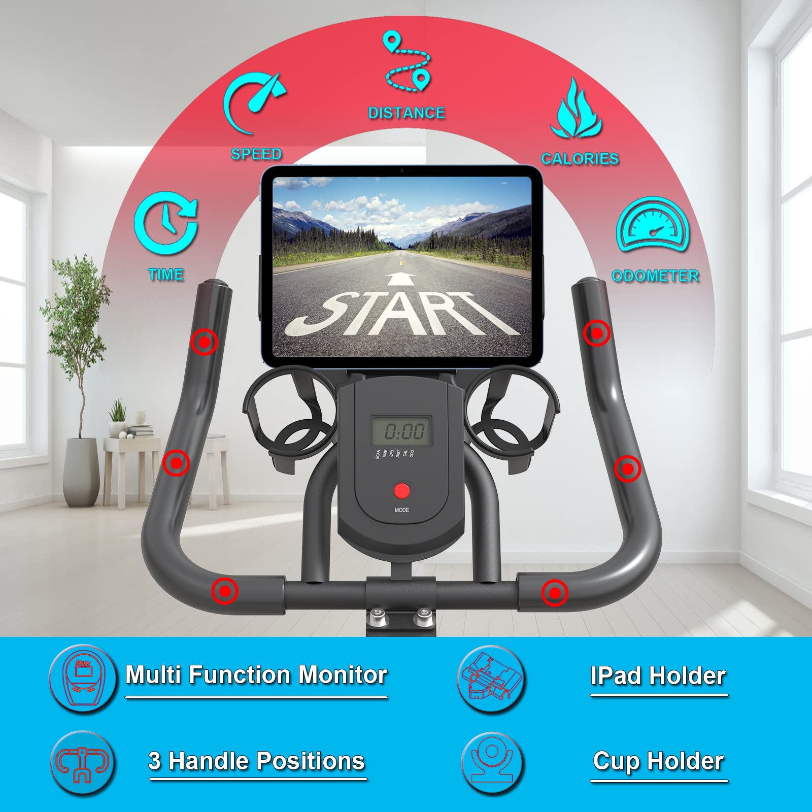GOFLYSHINE Exercise Bikes Stationary,Exercise Bike for Home Indoor Cycling Bike for Home Cardio Gym,Workout Bike with pad Mount & LCD Monitor,Silent Belt Drive (Black-red)