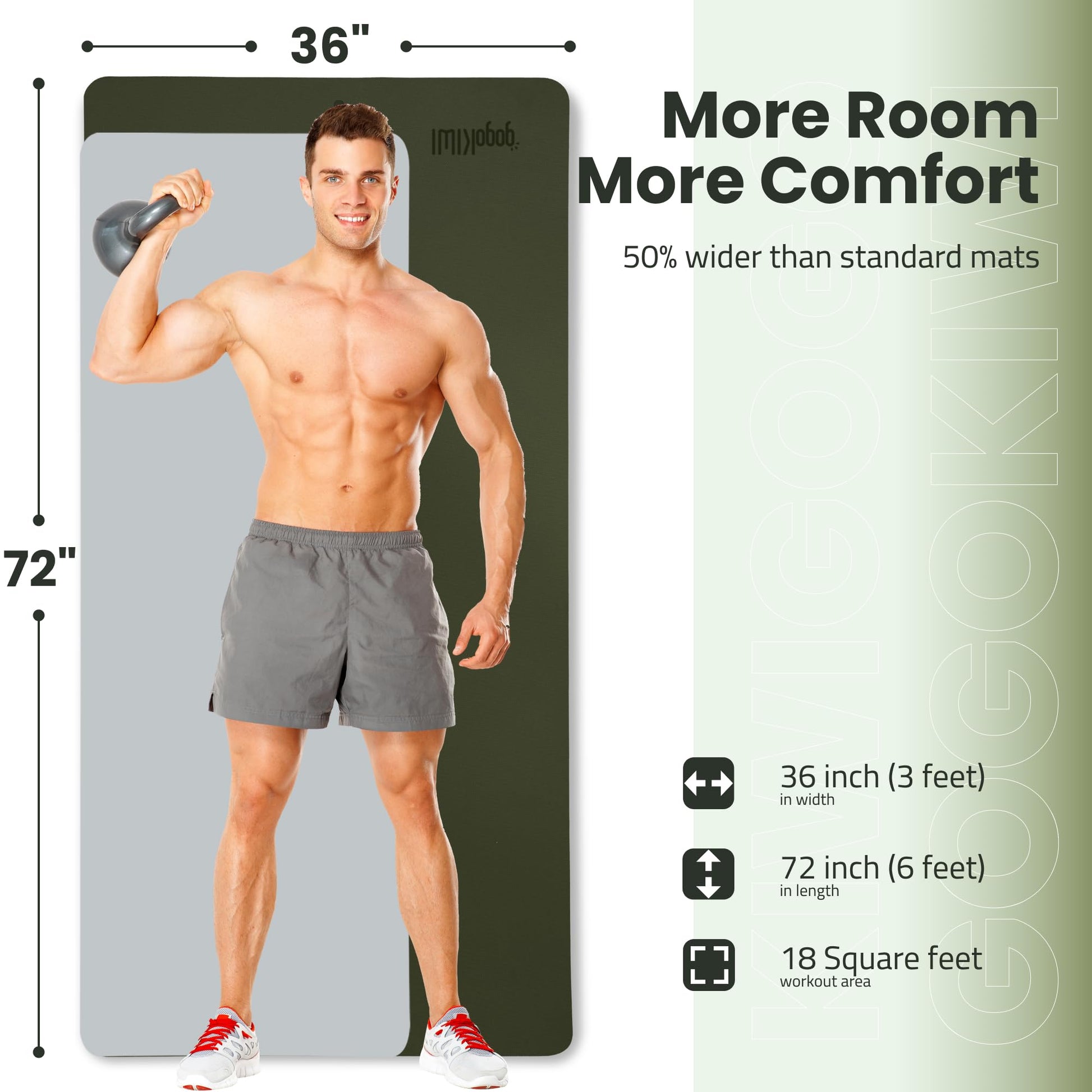 Gogokiwi Extra Wide Yoga Mat for Men Women (72"L x 36"W) Non Slip Fitness & Exercise Mat with Alignment Marks for Yoga, Pilates, Floor Workouts (Olive Green, Standard (1/4 inch Thick))