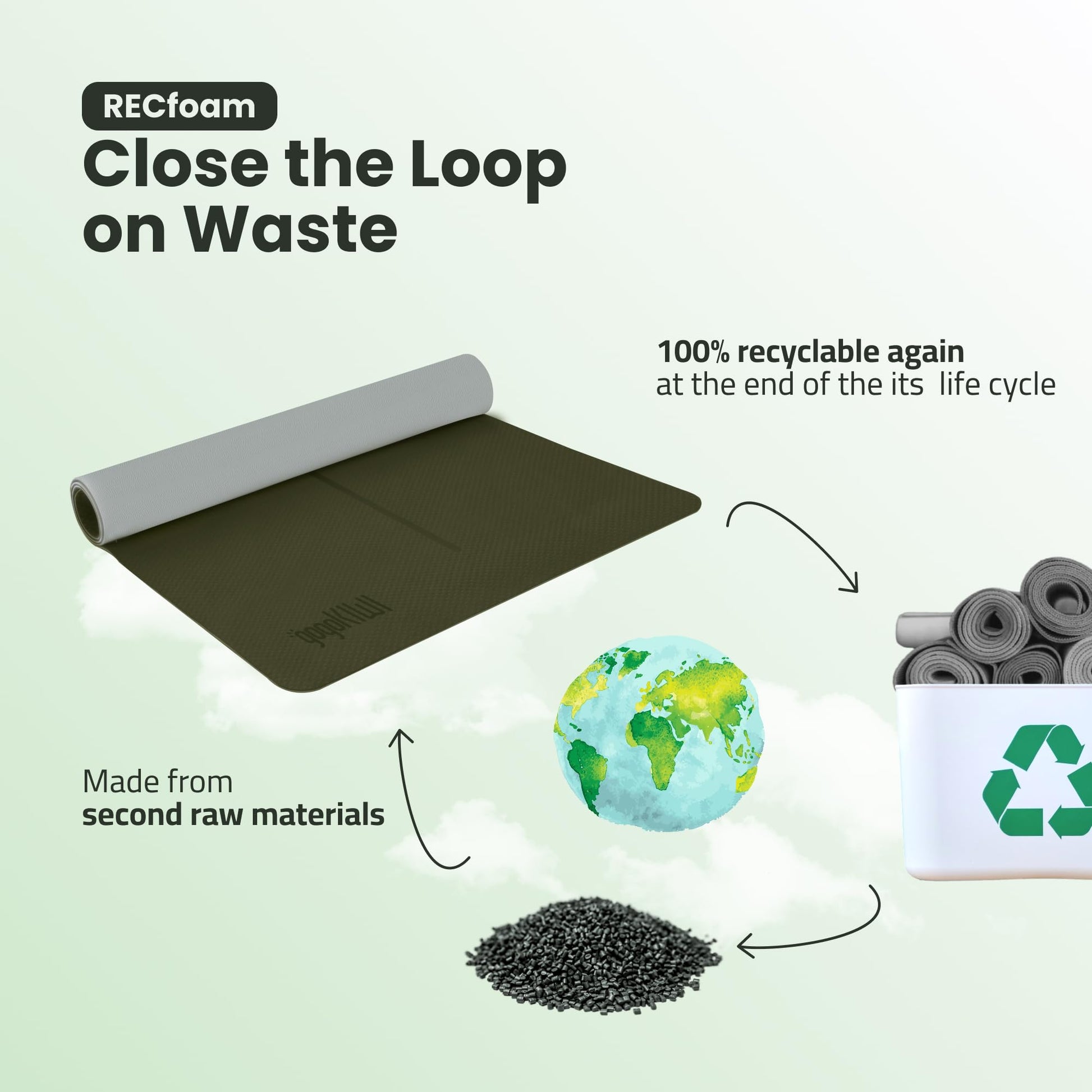 • 【Eco-friendly & Recyclable】Crafted from 100% recyclable premium Recfoam, our large exercise mat is not only durable but also kind to the environment, ensuring no harm to our planet during its lifecycle.