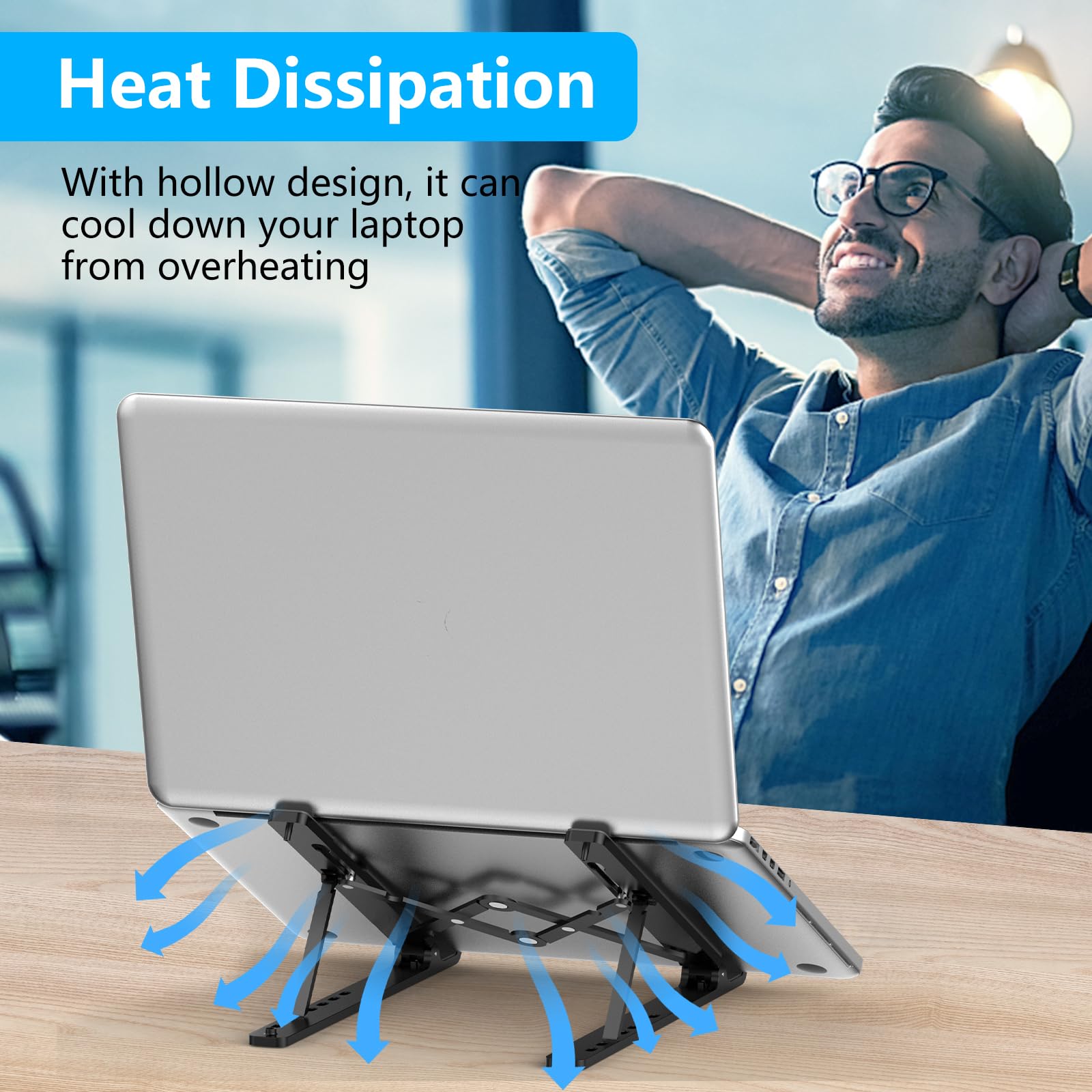 Gogoonike Adjustable Laptop Stand, Portable Laptop Riser for Desk, ABS+Silicone Foldable Ventilated Cooling Notebook Holder Stand for 10-15.6” Laptops,Tablets