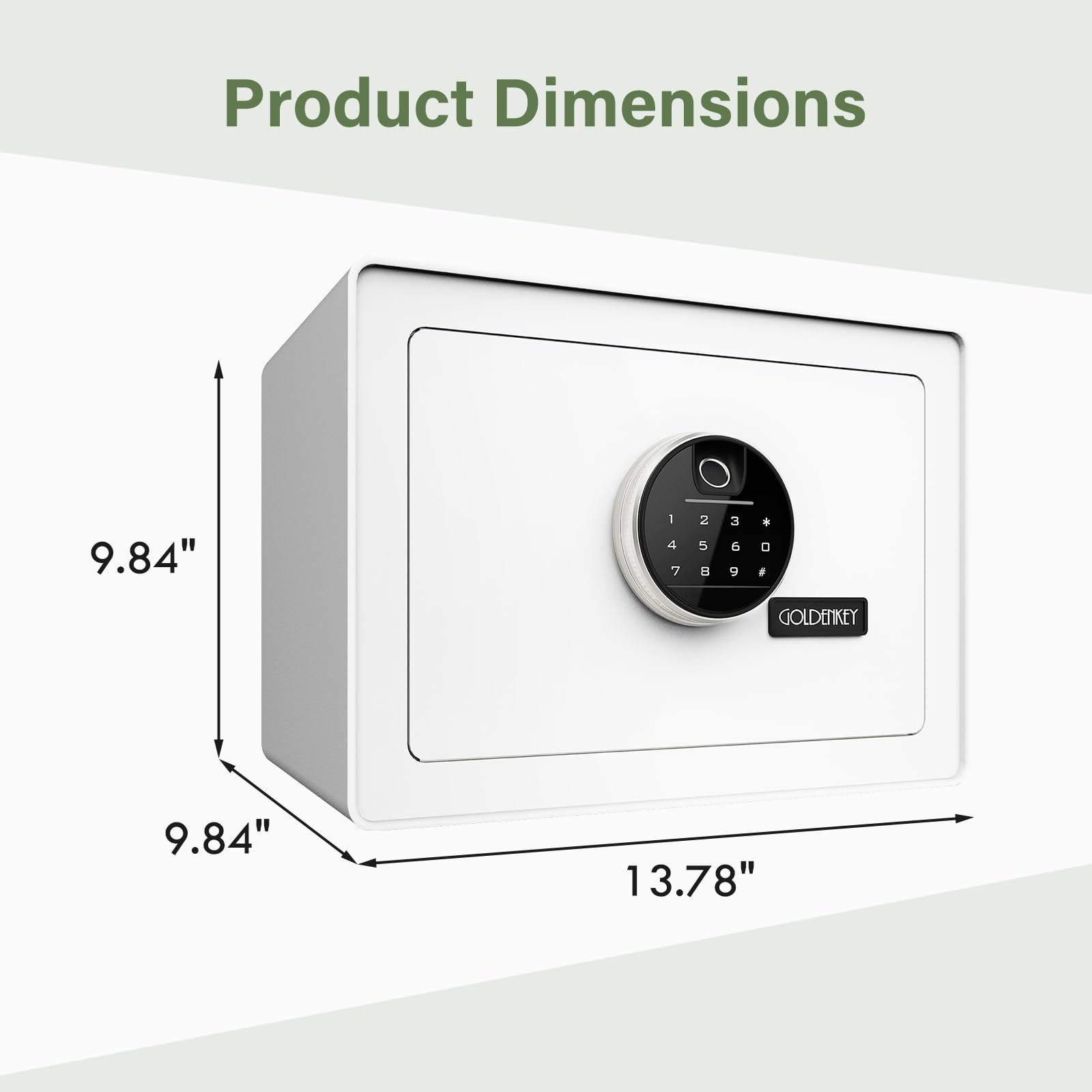 Goldenkey Luxury Jewelry Safe with Fingerprint&Keypad Lock, Document Safe Box with Soft Velvet Lining, Removable Shelf, High Security for Home Office, Hotel, 1.2 Cu.Ft.
