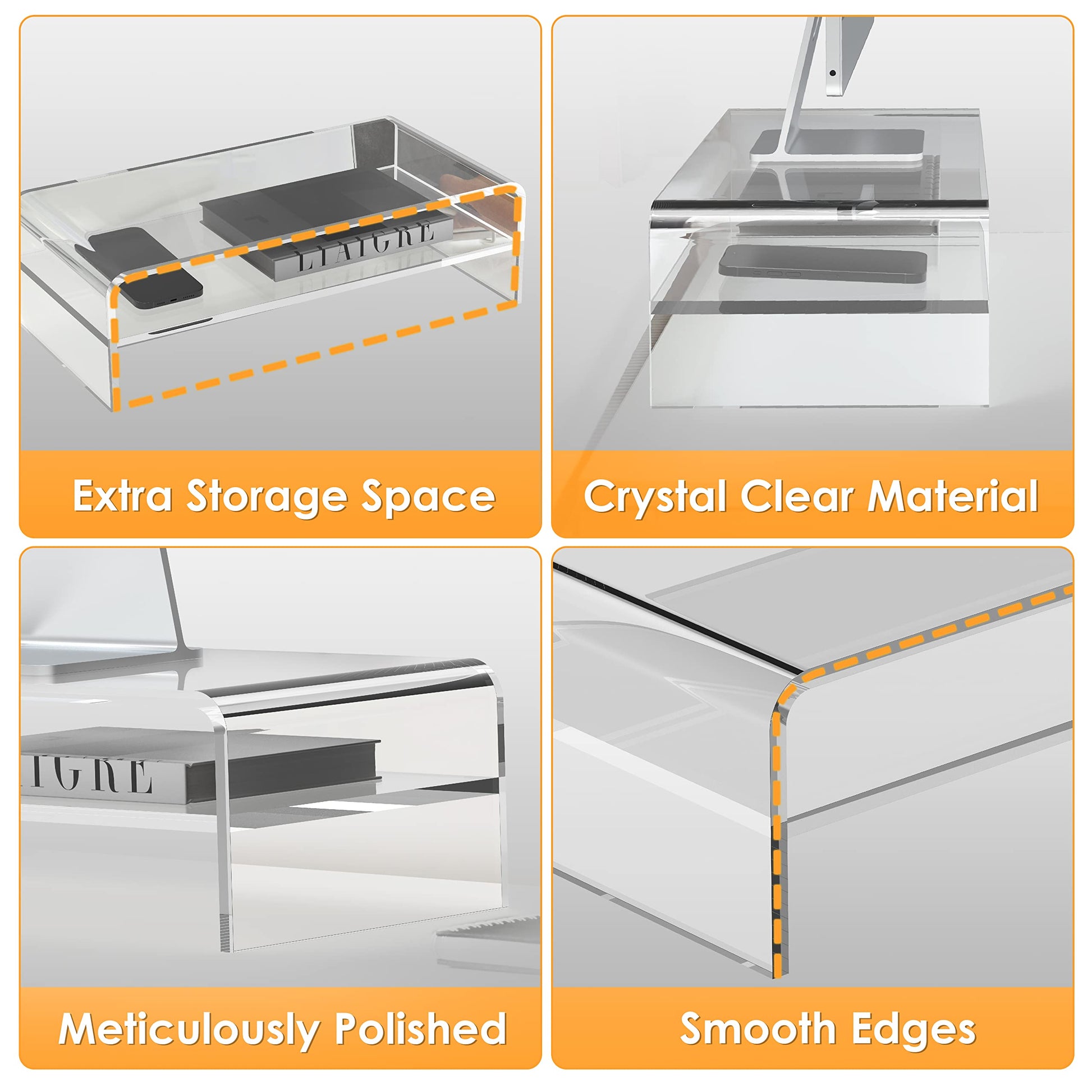 GoldOrcle Acrylic Monitor Stand Riser Clear Computer Monitor Stand (Big)