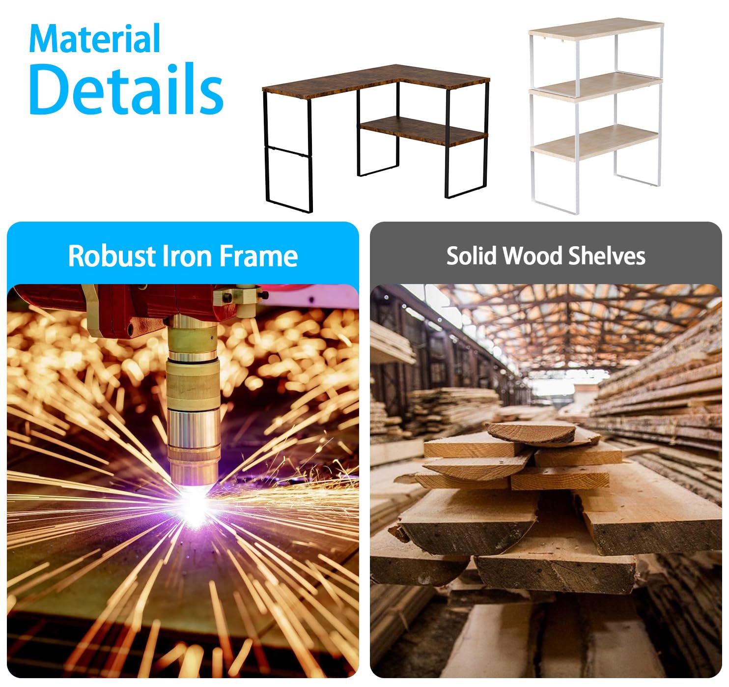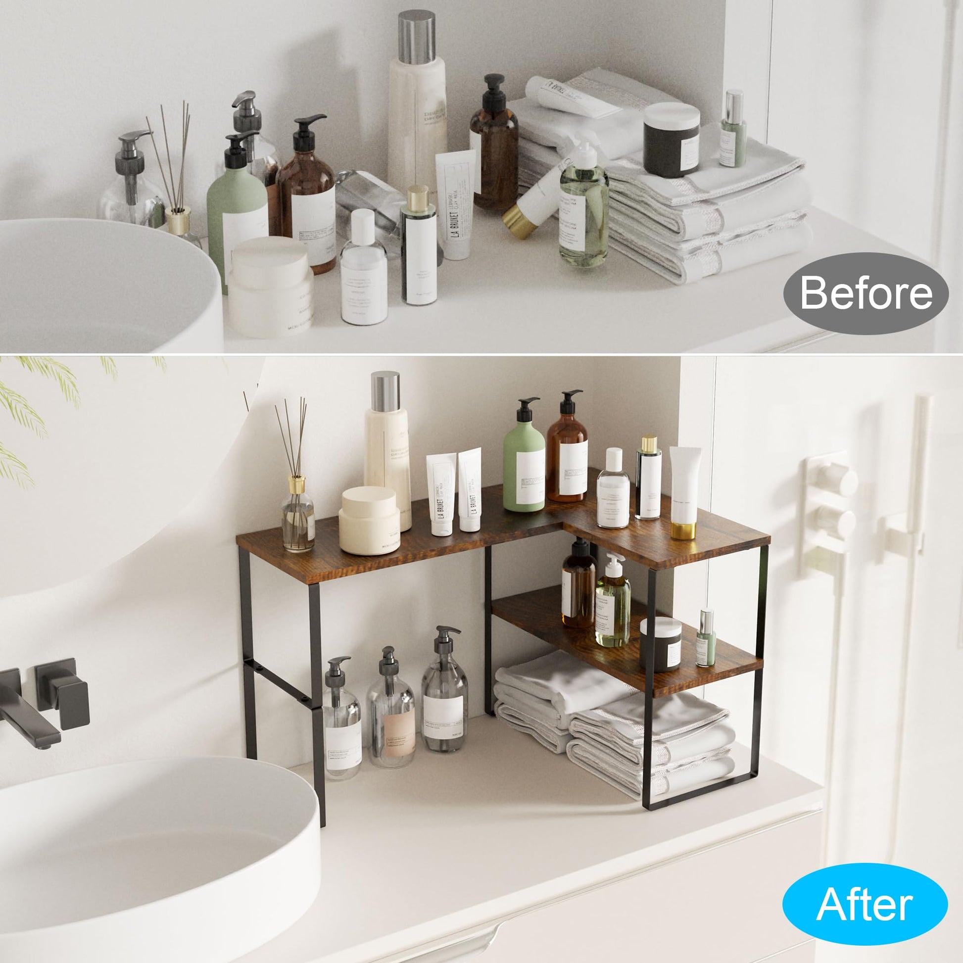Golener Countertop Organizer Corner Shelf, 2 Tier Adjustable Stackable Corner Shelves for Kitchen, Bathroom, Spice Rack, Coffee Area, Over Sink, Dresser Table, Corner Counter Shelf Stand, Rustic Brown