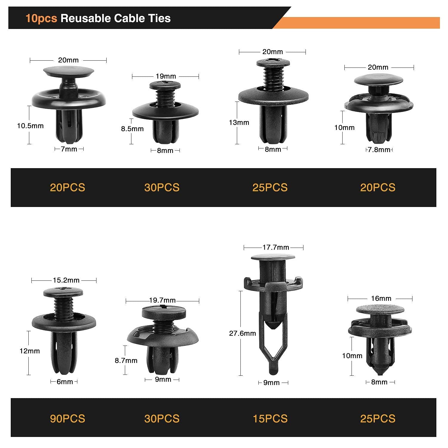 • 【WIDE APPLICATION】- Professional push clips are widely used for car panel, door trim, bumper and fender for GM Ford Toyota Honda Chrysler etc.