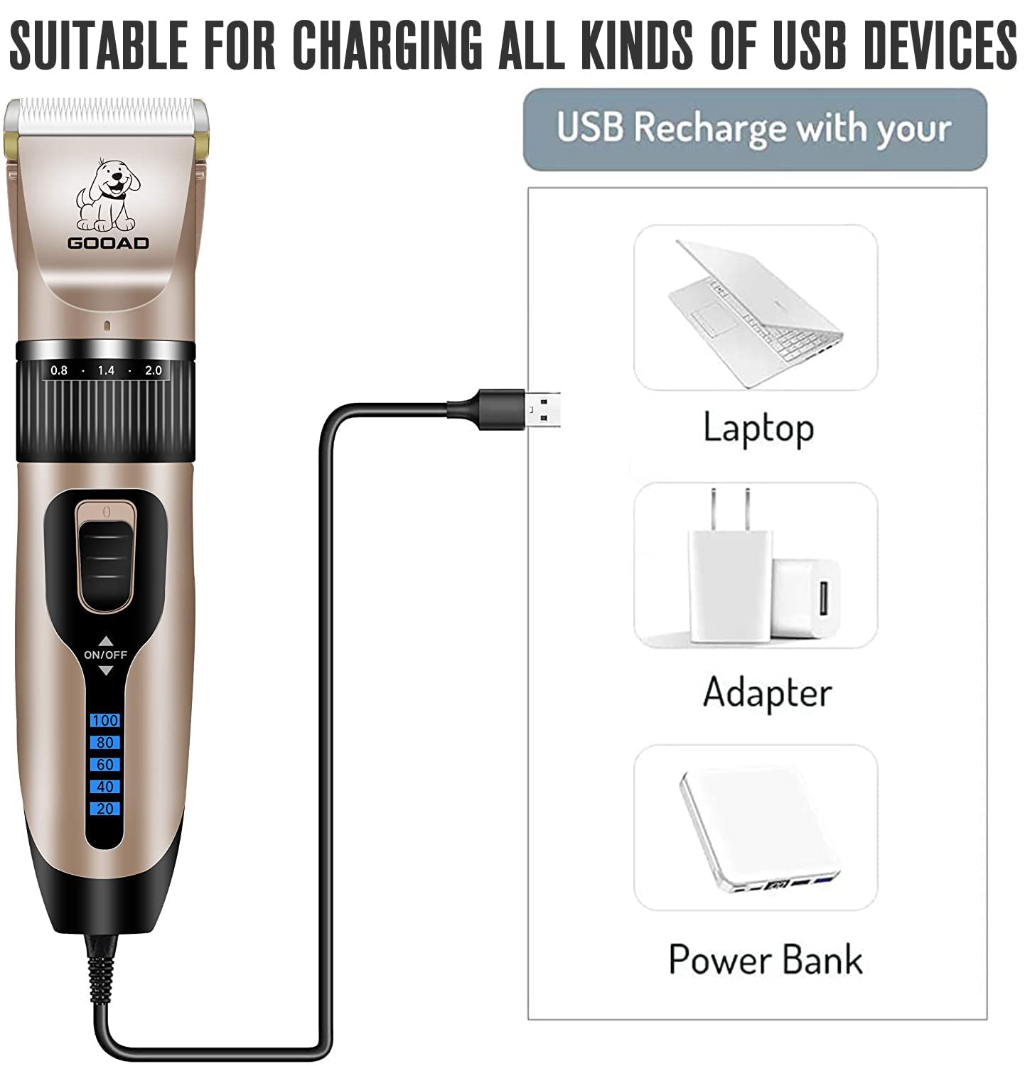 Gooad Dog Clippers for Grooming,Dog Grooming Kit for Heavy Thick Hair&Coats/Low Noise Rechargeable Cordless Hair Trimmer/Pet Shaver with Paw Trimmer for Small & Large Dogs Cats