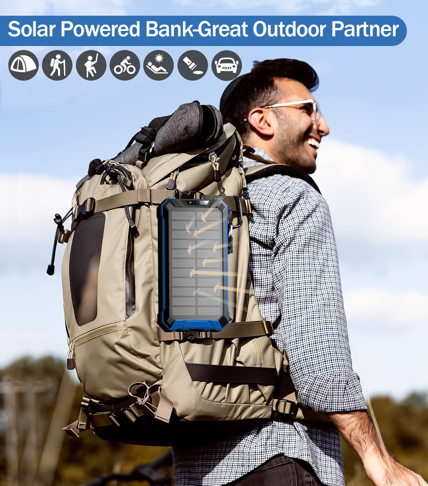 • [Super Large Capacity] With 36000mAh premium Li-polymer battery, this solar power bank can charge your devices multiple times. It can be recharged via adapter and solar power, free your worries of poweroff. Equipped with smart protection IC chip, it guarantees charging safety intelligently.