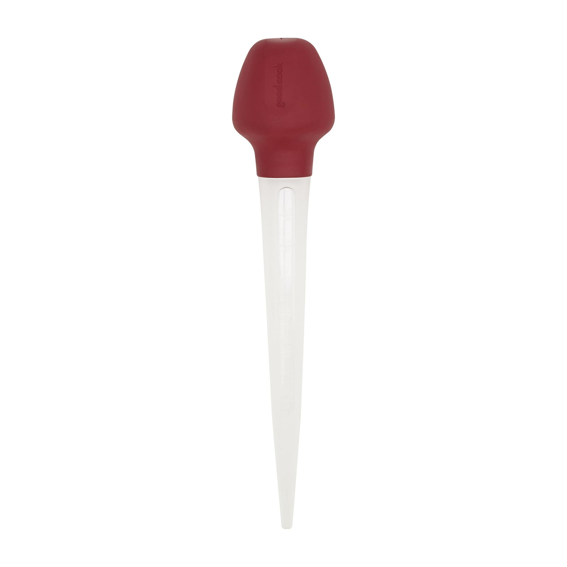 Details: Bring high-quality cooking tools to your home kitchen with the GoodCook Turkey Baster. Designed with home cooks in mind, this classic baster is great for basting and marinating turkey, chicken, and other roasts. Its versatile design can also be used to remove excess grease, oil, and drippings from the bottom of the pan. The flexible silicone basting bulb makes it easy to draw juices and liquids into the tube, and the flat side of the bulb allows it to sit on countertops without rolling away. The clear BPA-free polypropylene plastic basting tube measures up to 1.5 oz. of liquid, and the narrow tip effortlessly injects it into the meat. The tube is heat resistant up to 212°F and the bulb is heat resistant up to 450°F, while the longer 11.5' length keeps hands away from hot pans and liquids for safer use. The two-piece construction allows the bulb to be detached from the tube for easy cleaning, and both pieces are top rack dishwasher safe. Measuring 14' x 3.75' x 2' total, this baster can be conveniently stored in utensil drawers when not in use. For over 30 years, GoodCook has created the tools that have made life in the kitchen easier and more enjoyable. As we’ve grown, we strived to stay on trend and continually incorporate more function and value into our kitchenware products. We take pride in the fact that GoodCook products are being used every day, and that our name is recognized as a helpful resource supplying products, recipes and inspiration for home cooks across America.