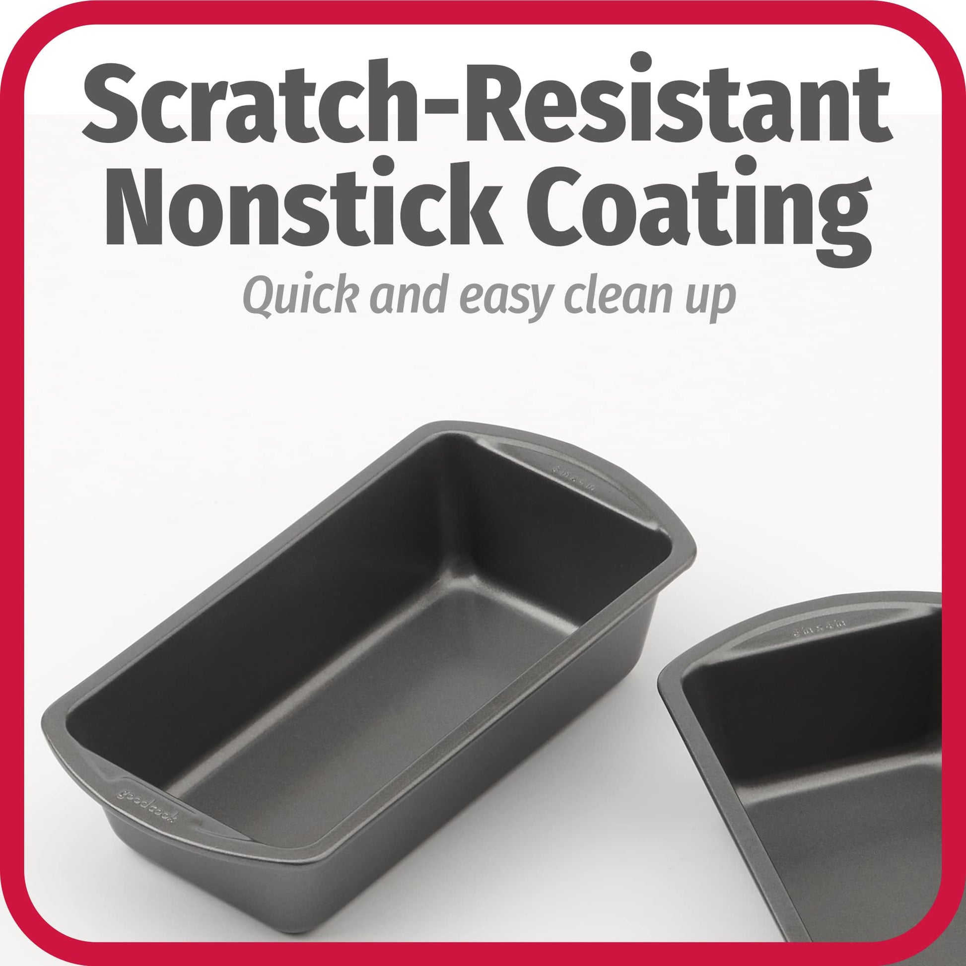Details: Bring high-quality cookware and bakeware to your home kitchen with the GoodCook Medium Loaf Pan Set. Perfect for home cooks, these 8" x 4" loaf pans are ideal for baking meatloaf, sweet or savory breads, thick cakes, brownies, and smaller portions of lasagnas or casseroles. Enjoy consistent results with their even heat distribution, ensuring a thorough bake for the best tasting outcomes on even the most challenging of recipes. The scratch-resistant nonstick coating offers an excellent mess-free release and is metal spatula safe. Constructed with heavy-duty gauge steel, the pans resist warping and provide long-lasting durability. They are dishwasher safe for quick clean up, but hand-washing is recommended to maintain their quality over time. For over 30 years, GoodCook has created the tools that have made life in the kitchen easier and more enjoyable. As we’ve grown, we strived to stay on trend and continually incorporate more function and value into our kitchenware products. We take pride in the fact that GoodCook products are being used every day, and that our name is recognized as a helpful resource supplying products, recipes and inspiration for home cooks across America.
