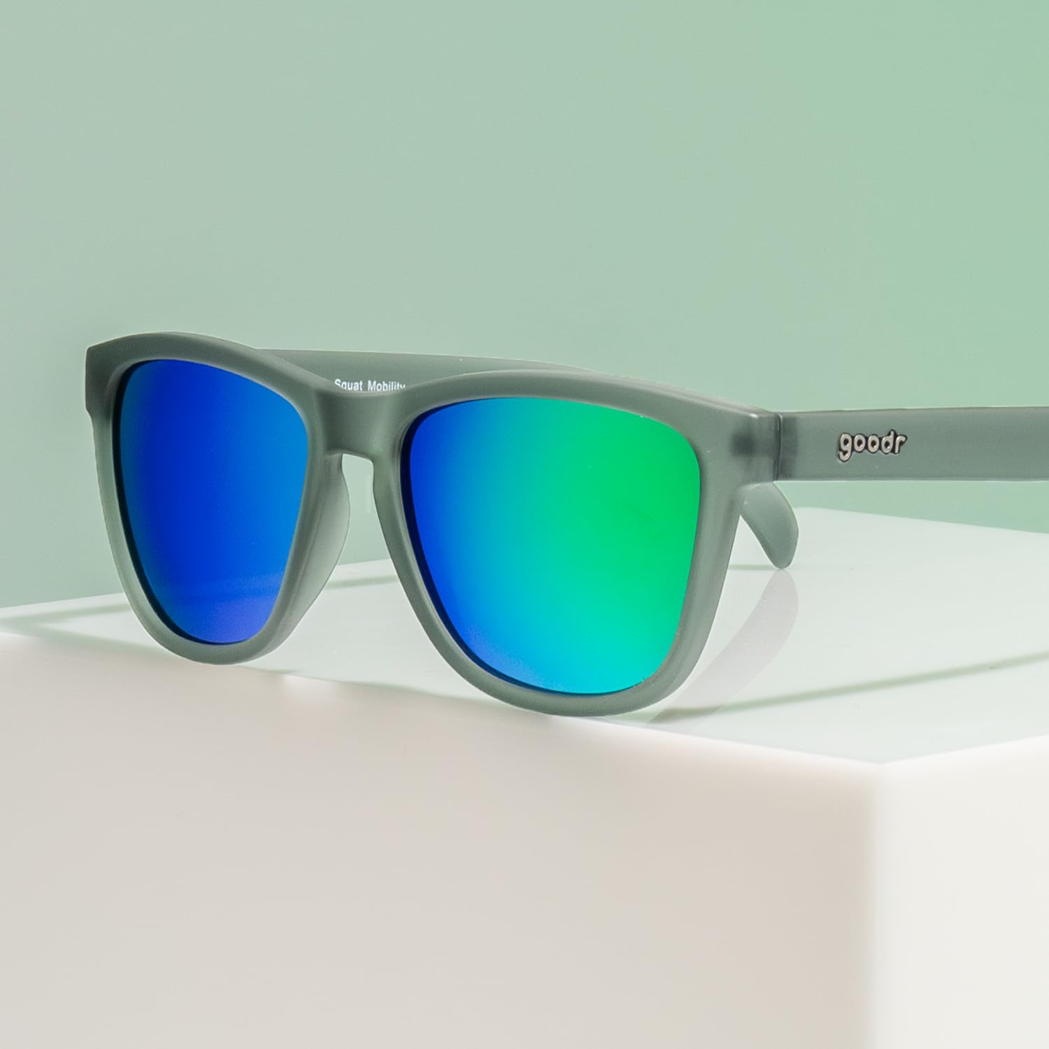 goodr Silverback Squat Mobility Polarized Sunglasses for Men & Women, Medium Sized (OG), Dark Gray Translucent Frames with Light Green Mirrored Reflective Lenses, UV400 Protection, No Slip, No Bounce