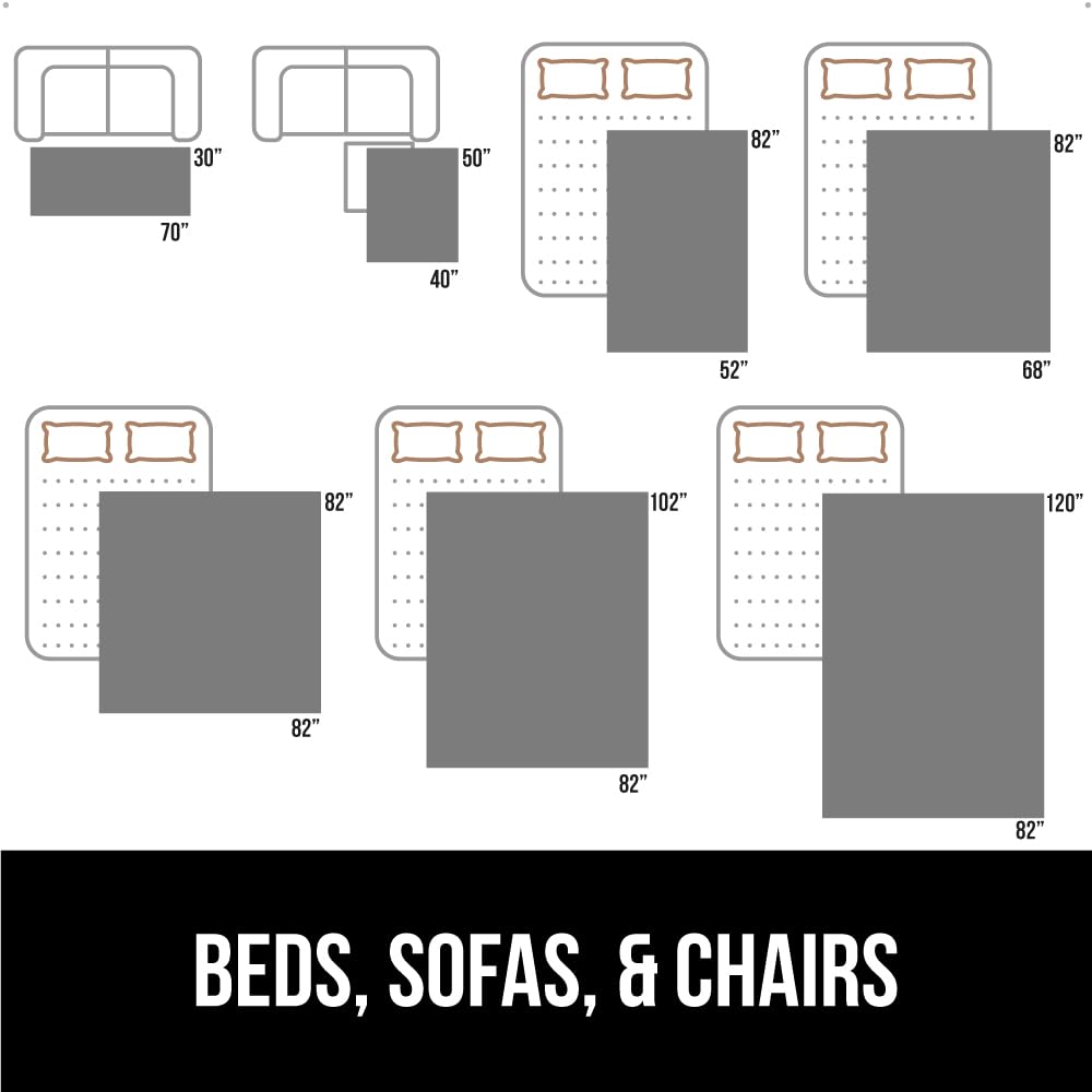 • BEDS, SOFAS, AND CHAIRS: blanket measures 82” x 102”; available in many sizes for all spaces; sizing aligns with bed and sofa sizing for a perfect fit; machine wash and dry