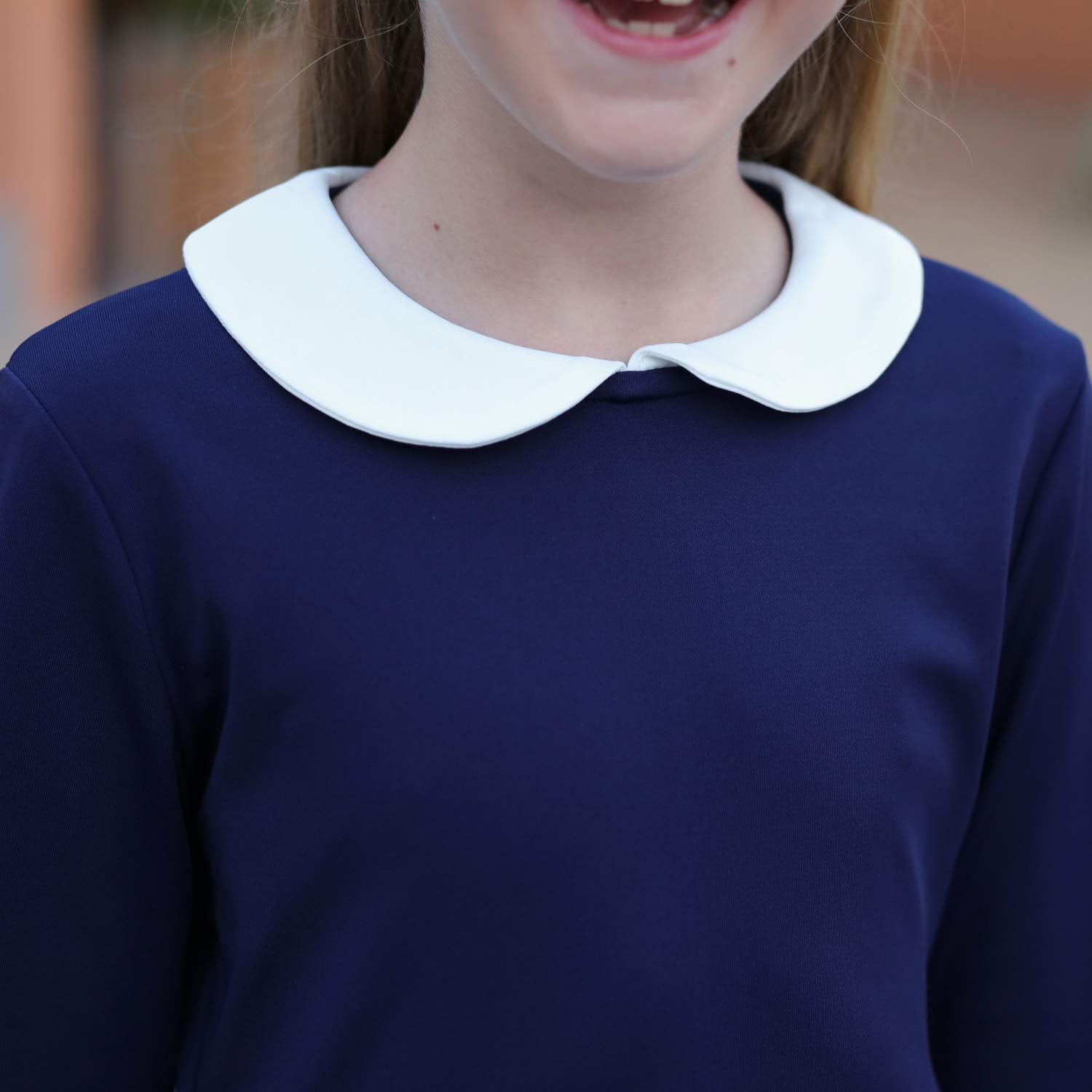 GORLYA Girl's Long Sleeve Casual Vintage Peter Pan Collar Fit and Flare Skater Party Dress with Pockets (GOR1006, 7-8Y, Navy)