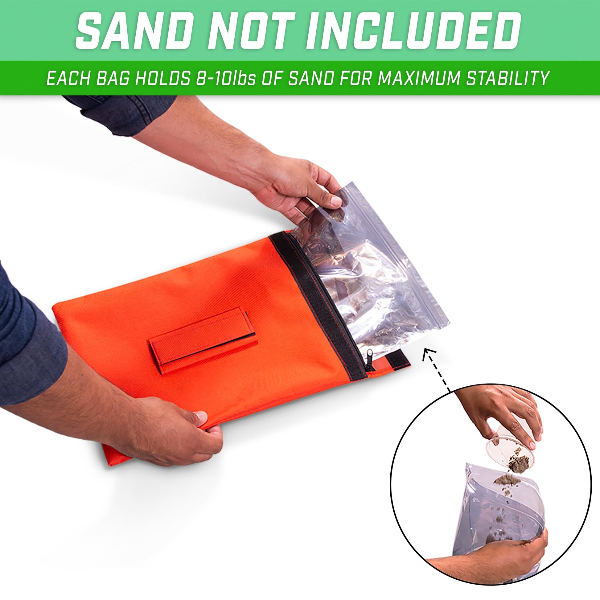 • SAND NOT INCLUDED: Each sandbag can hold 8-10 pounds of sand that can be purchased at most hardware stores