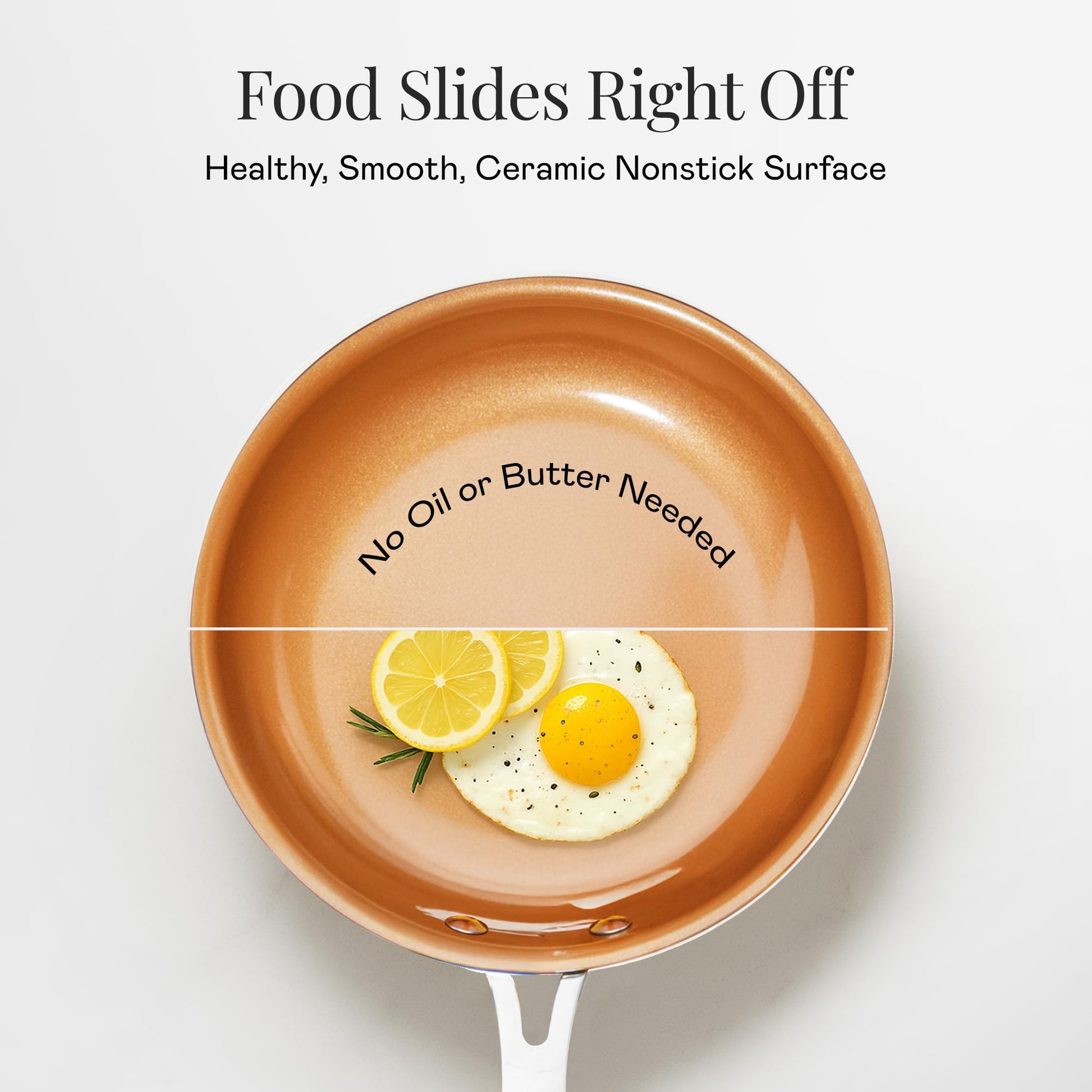 Gotham Steel 9.5 Inch Copper Non Stick Frying Pans, Ceramic Non Toxic Frying Pans Nonstick Skillet Made Without PFOA PFOS, Lightweight, Stay Cool Handle, Oven and Dishwasher Safe