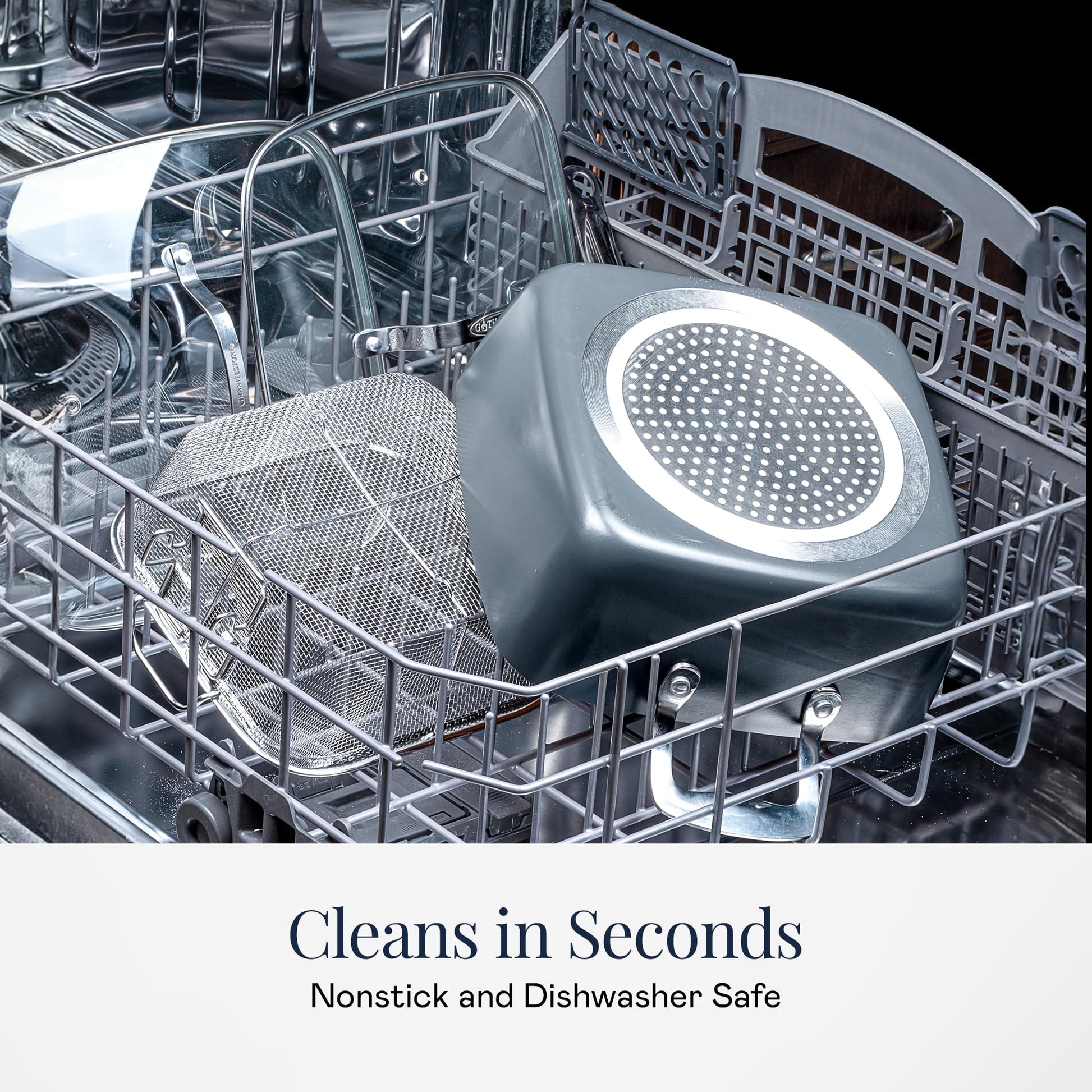 • EFFORTLESS CLEANUP, DISHWASHER SAFE– spend less time with cleanup! After all the cooking and prepping is done, place cookware in the dishwasher for quick and easy cleanup.