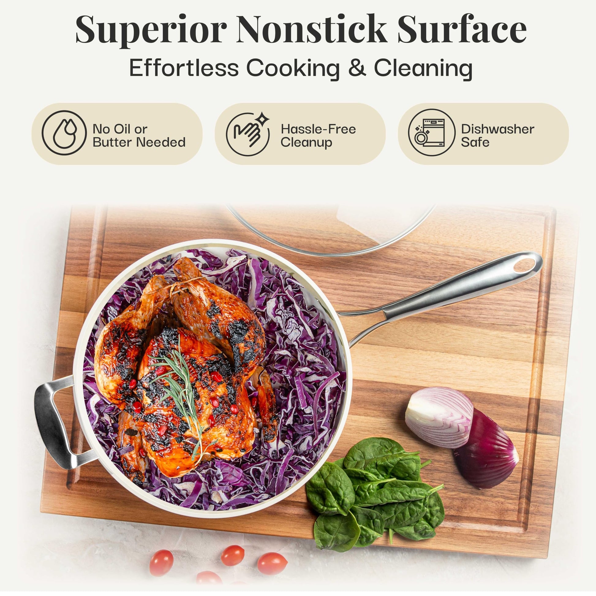 • ULTRA NONSTICK CERAMIC SURFACE: Healthy cooking is just a step away. Thanks to a nonstick surface that’s 2x more durable than previous generations, minimal to no oil or butter is needed. And they’re designed to properly conduct heat so food cooks evenly.