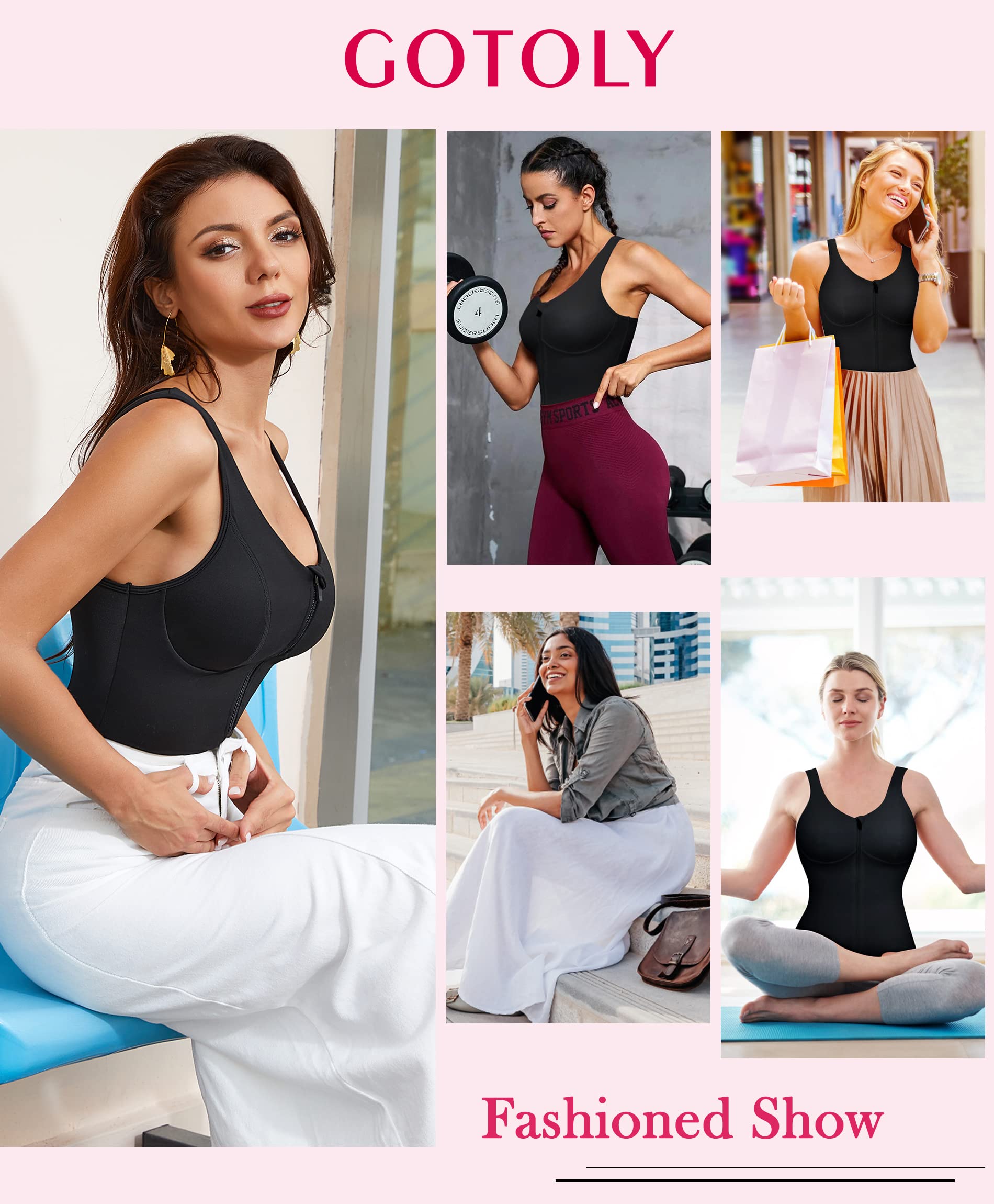 Gotoly Women's Compression Tank Tops Triple Tummy Control Workout Tops Shapewear Camisole Cami Shaper with Zipper Body Shaper(Black, Medium)