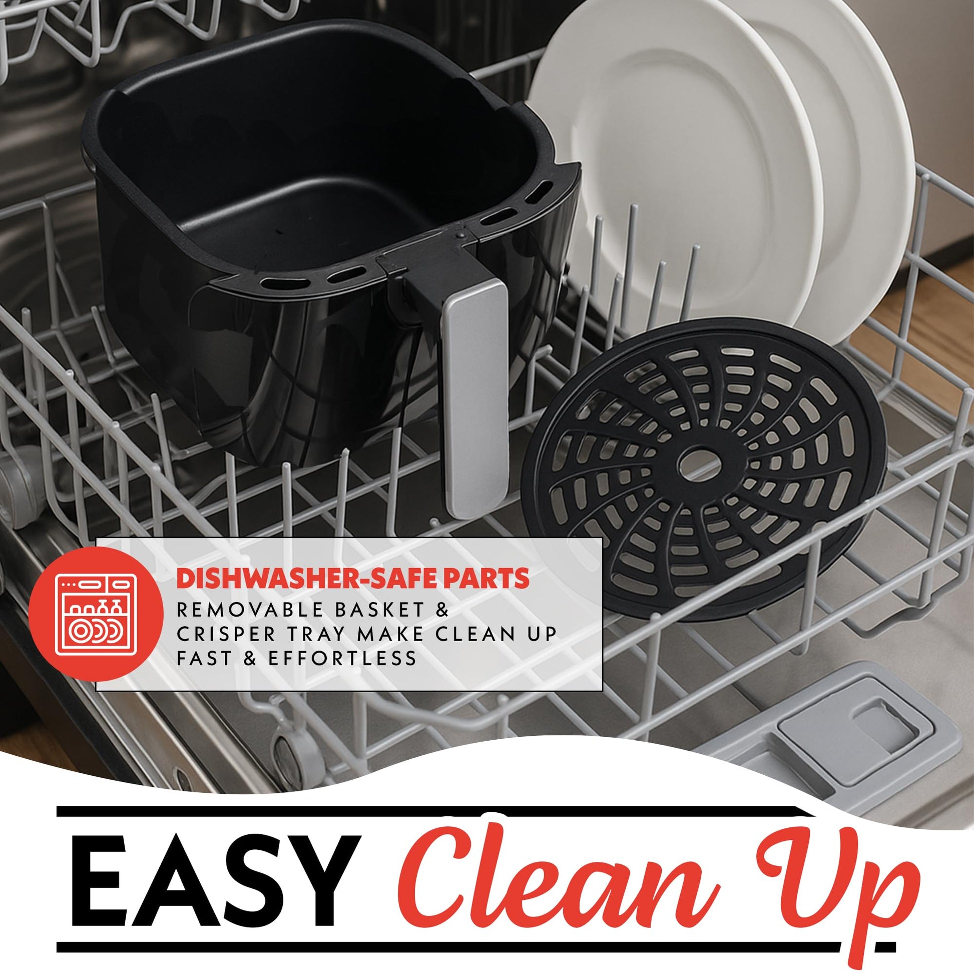 • Effortless Cleanup – Includes a nonstick, dishwasher safe four quart basket and crisper tray—no scrubbing or soaking required