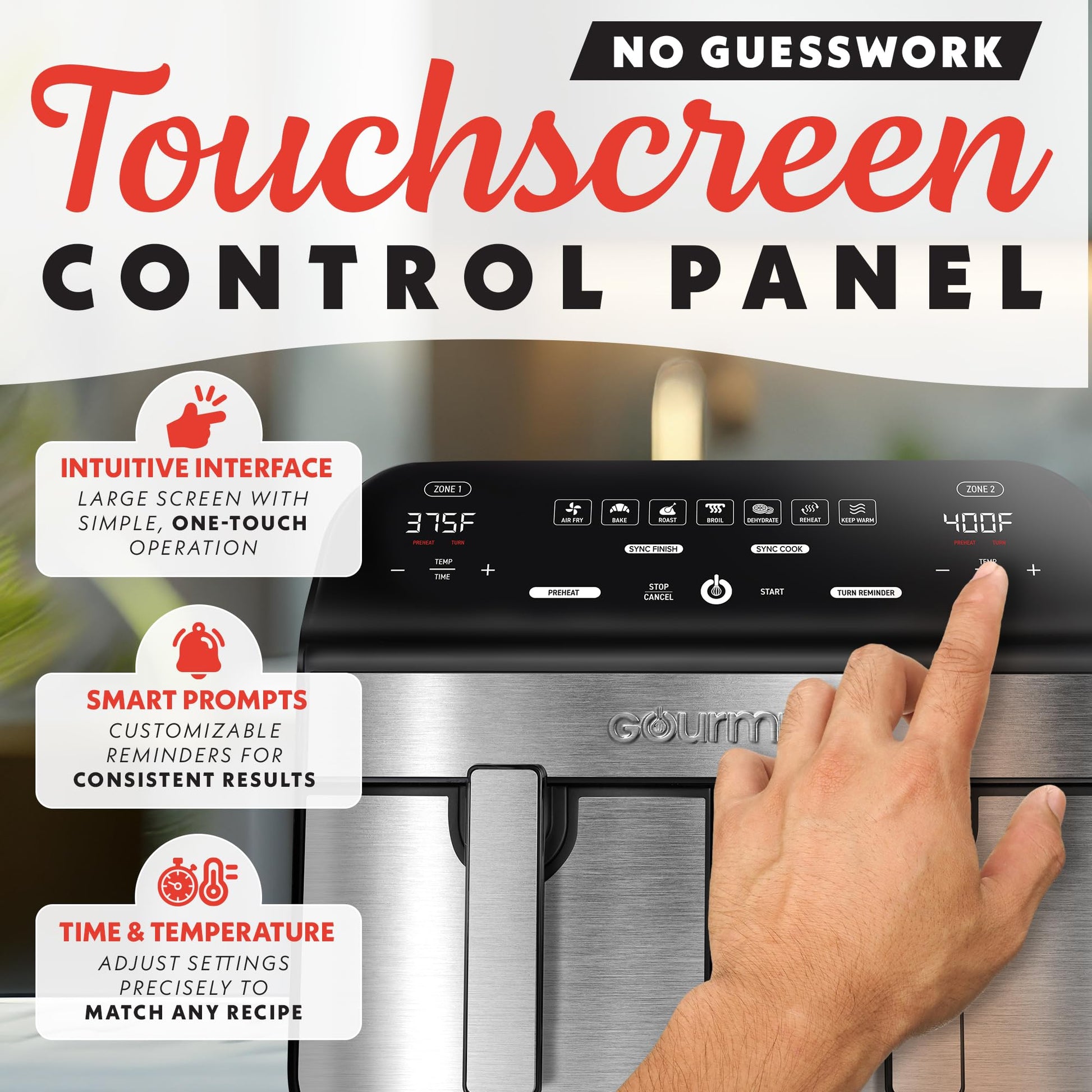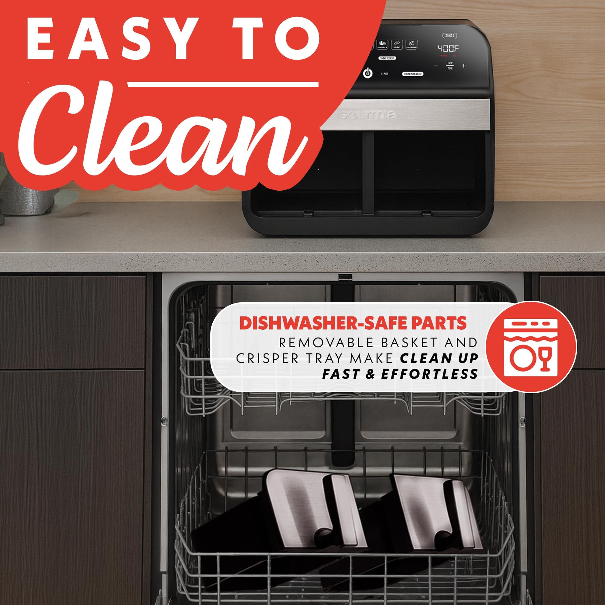 Gourmia Dual Basket Digital Air Fryer – 10 QT, FryForce 360° Technology, 7 Presets, Match Cook & Smart Finish, PTOA-Free Baskets & Crisper Trays, 1600W, Black