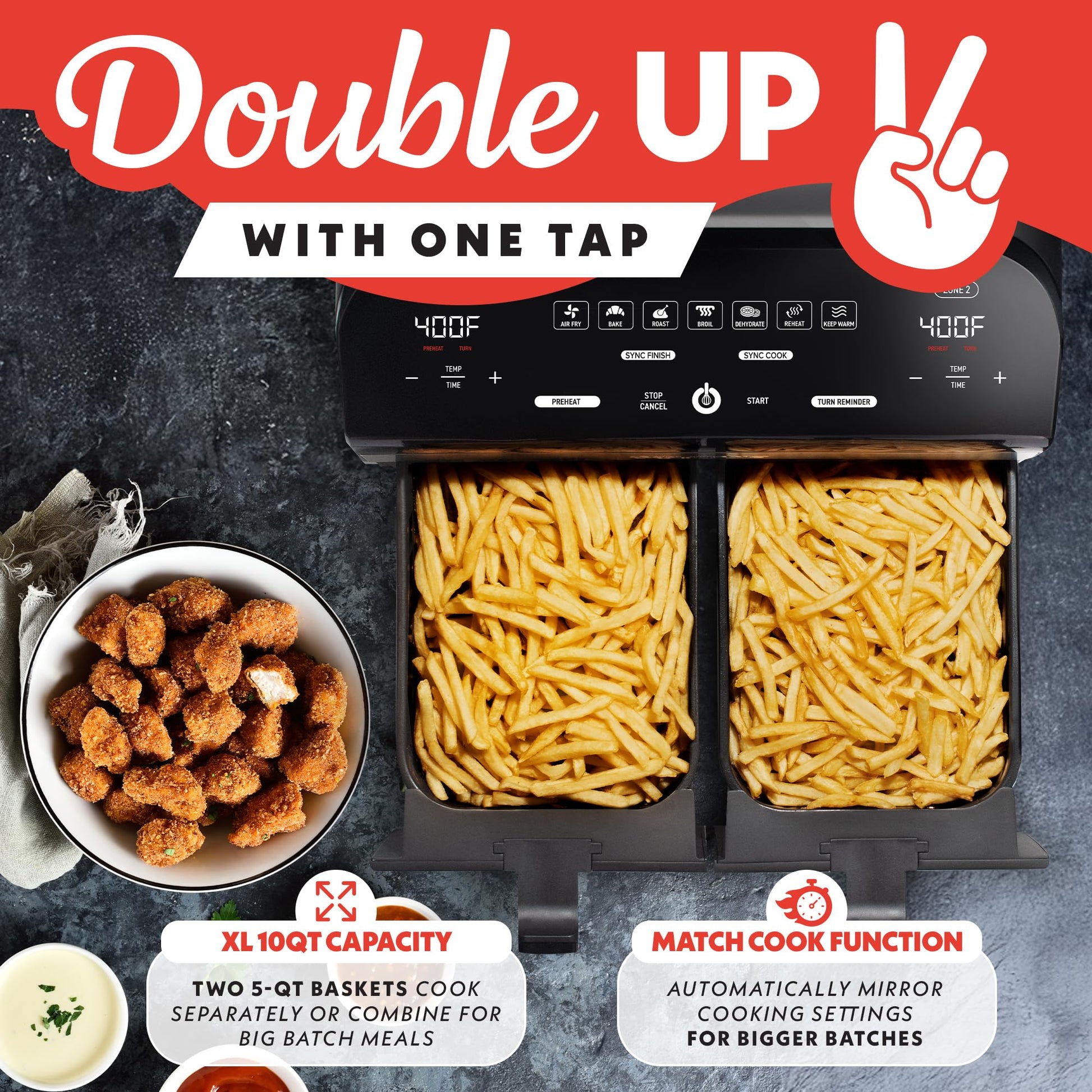 • Double Your Capacity – Use match cook to mirror settings across both five quart baskets for full ten quart meals, perfect for families or entertaining