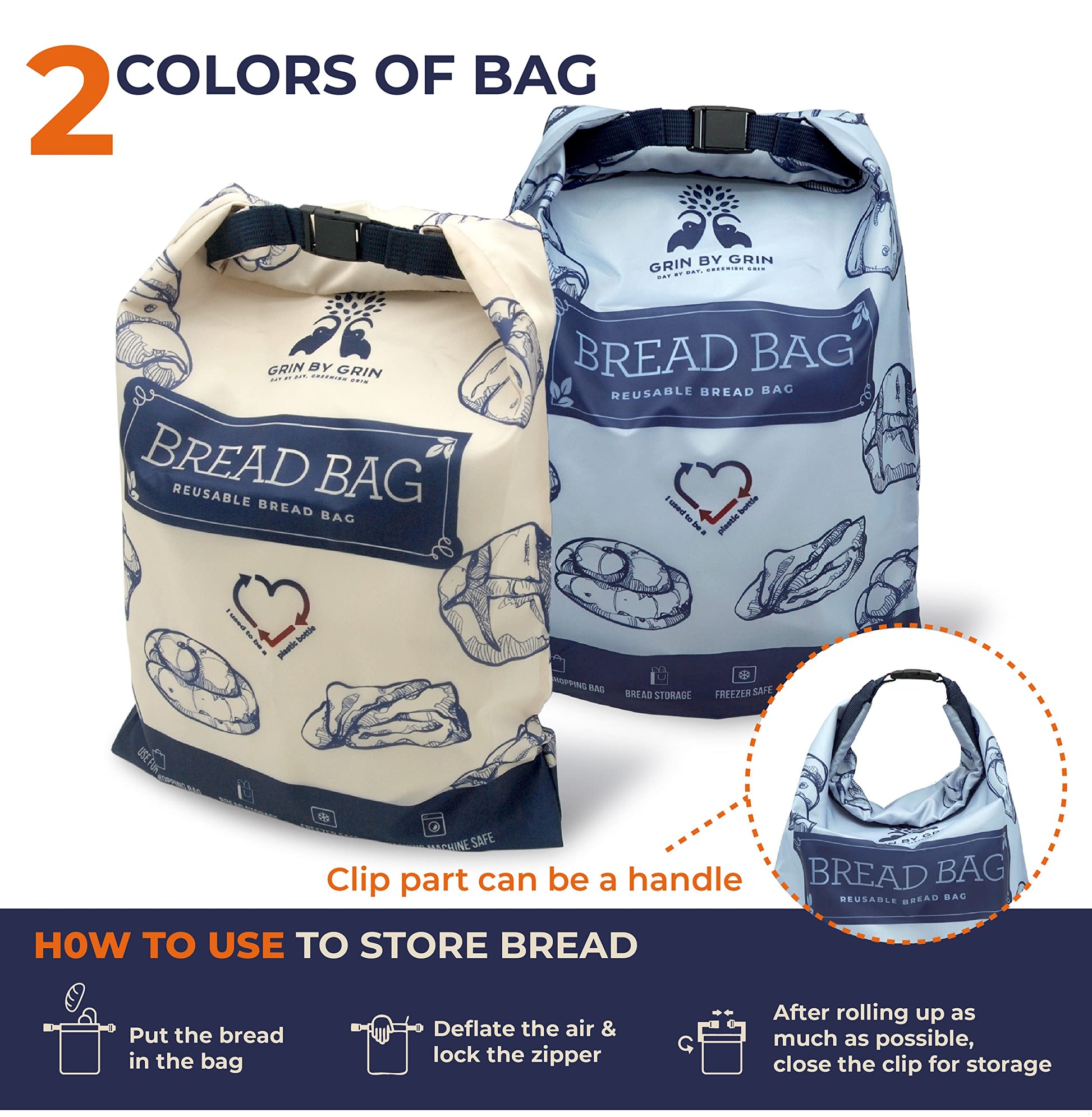 GRIN BY GRIN- 2 Packs Bread Bags, Zipper Reusable Bread Bags for Homemade Loaf, Freezer Sourdough Container, Fresh Keeping Extra Large, Reusable Food Storage Bag