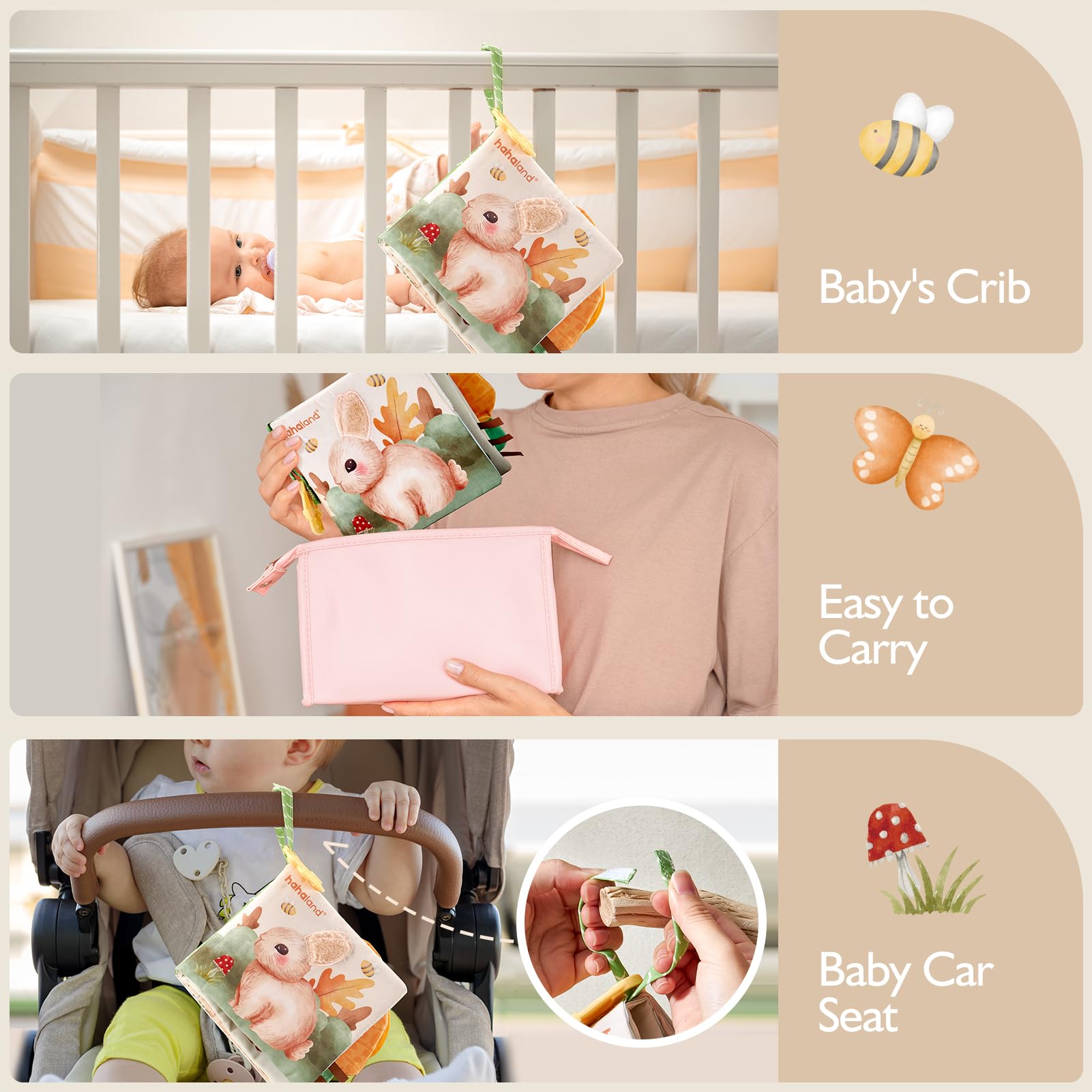 • User-friendly Hanging Strap Design: Unlike other velcro hanging straps with limited load-bearing capacity, ours is an improved closed hanging strap that can be used with hooks and hung anywhere such as a stroller, car seat, and so on, which is convenient for baby to pull at will and not fall off easily. This baby book is a wonderful newborn baby girl-boy easter gift