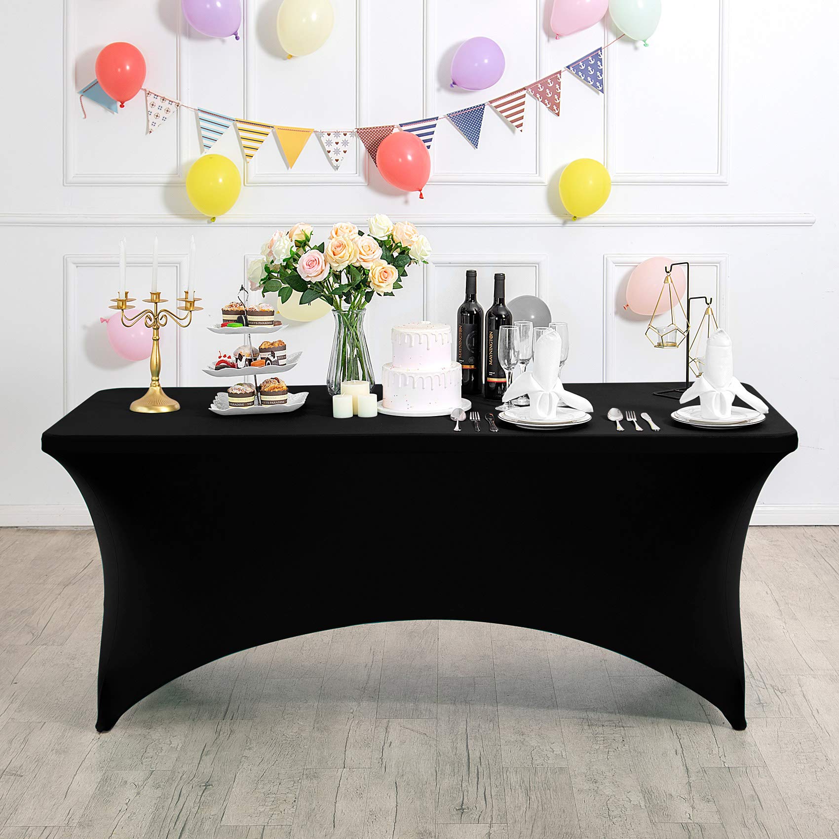 Hezuzo Spandex Table Cover for 4FT or 6ft or 8ft Table Universal Fitted Stretch Tablecloth for Party, Banquet, Wedding and Events-Black