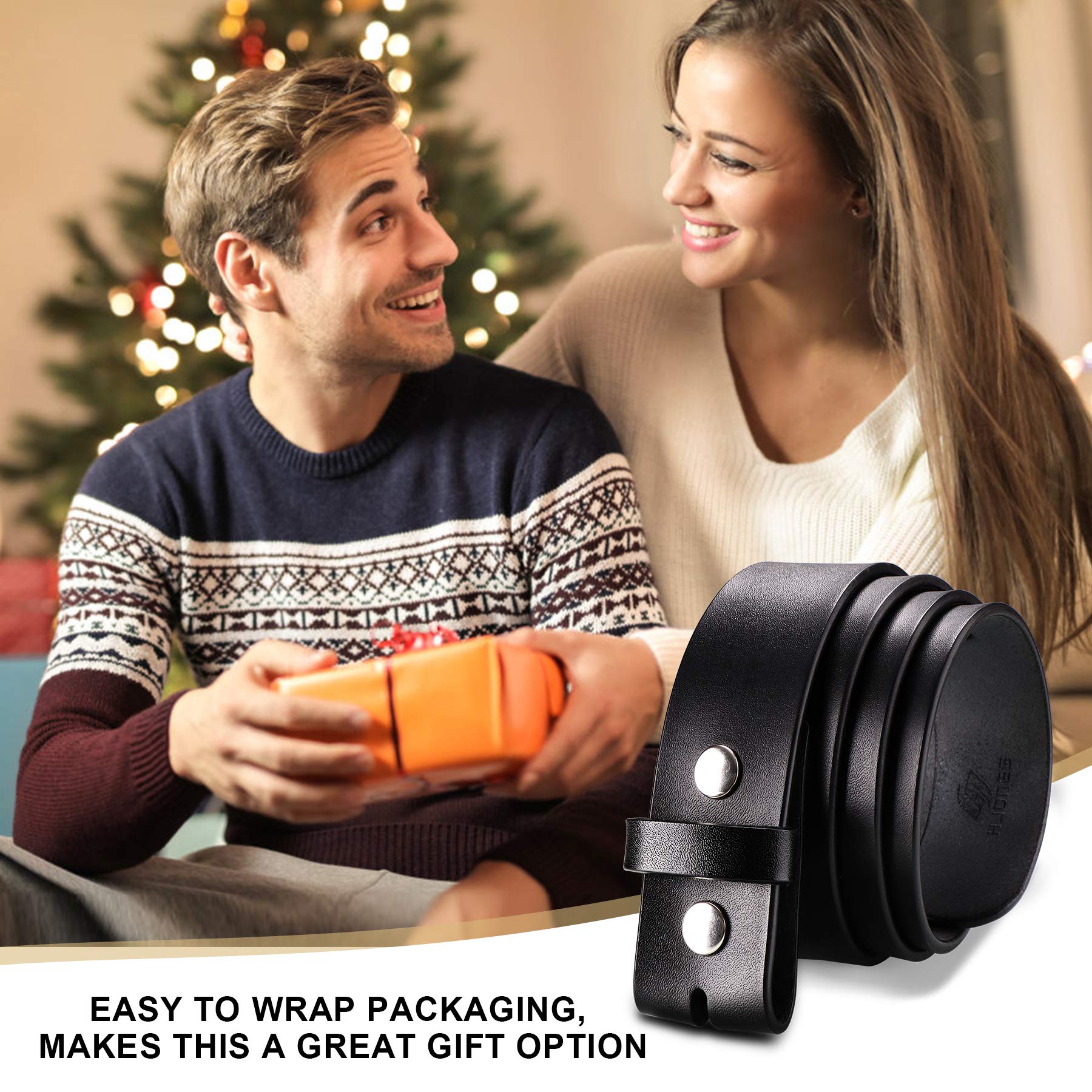 HJones Western Belts for Men without Buckle, Cowboy Belt Buckles for Men, 1.5" Wide Genuine Leather Belt without Buckle for Wedding Bussiness(Black, 38 inch)