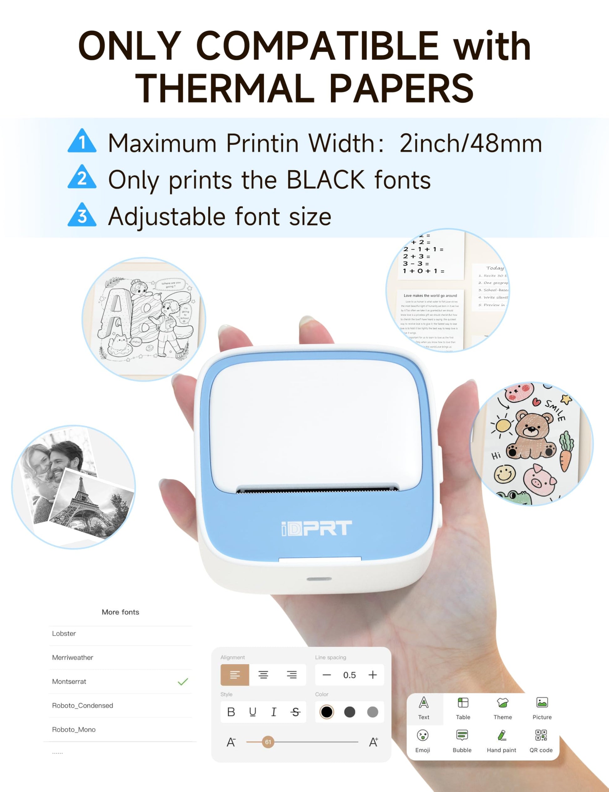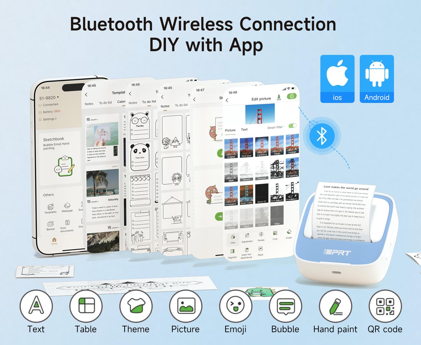 iDPRT Portable Sticker Maker Machine with 1 Roll Sticker Paper, Mini Printer Efficiently and Quickly, Thermal Printer for Study Notes, Pictures, DIY, Label, Free App with Multiple Templates, Blue