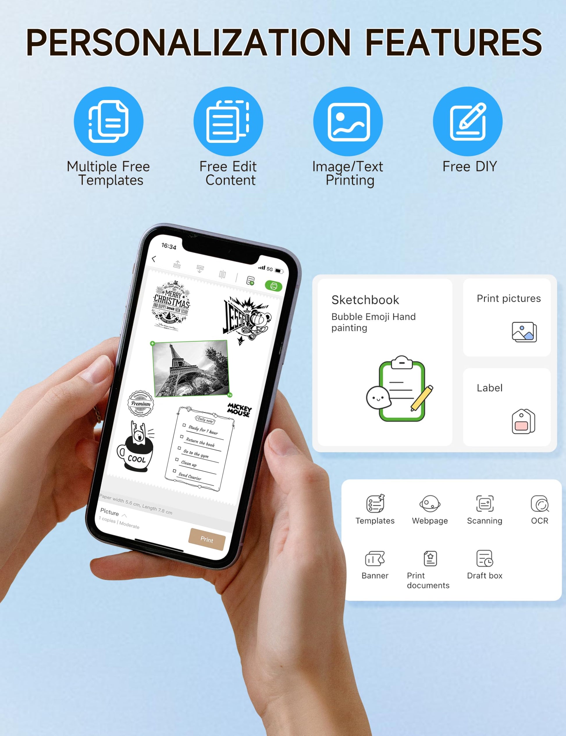 • Customized Label Printing: With our Mini Printer, you can easily customize your labels and stickers to suit your needs. Simply connect to the printer and let your creativity take over