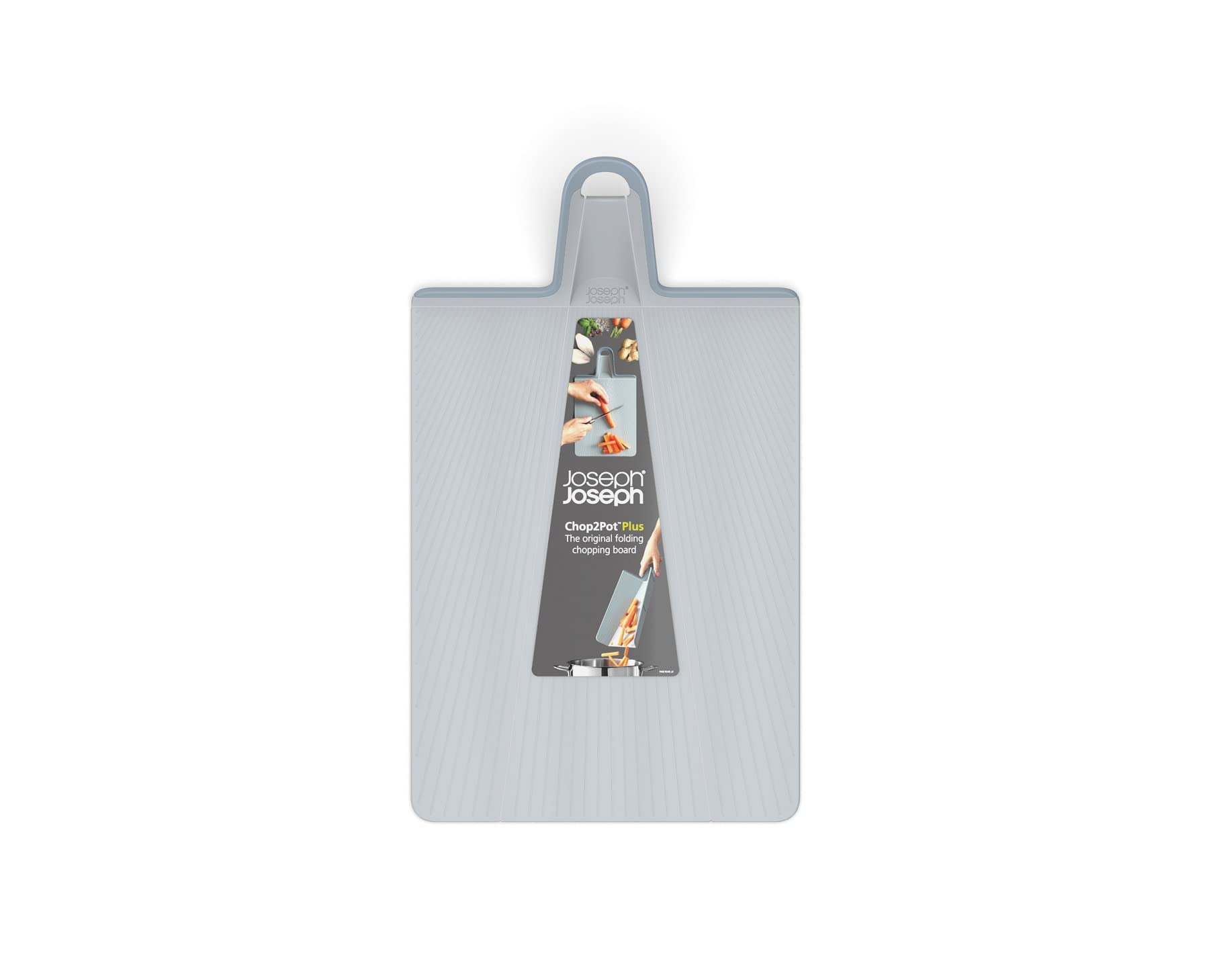 Details: Chop2Pot™ is the innovative solution to transferring a variety of chopped foods to pots, pans and – in the case of peelings – compost caddies. Laid flat, its knife-friendly, non-slip surface is perfect for all types of food prep. With a squeeze of the handle the sides of the chopping board fold up to create a chute for easy pouring, ensuring less mess and more efficient meal prep.